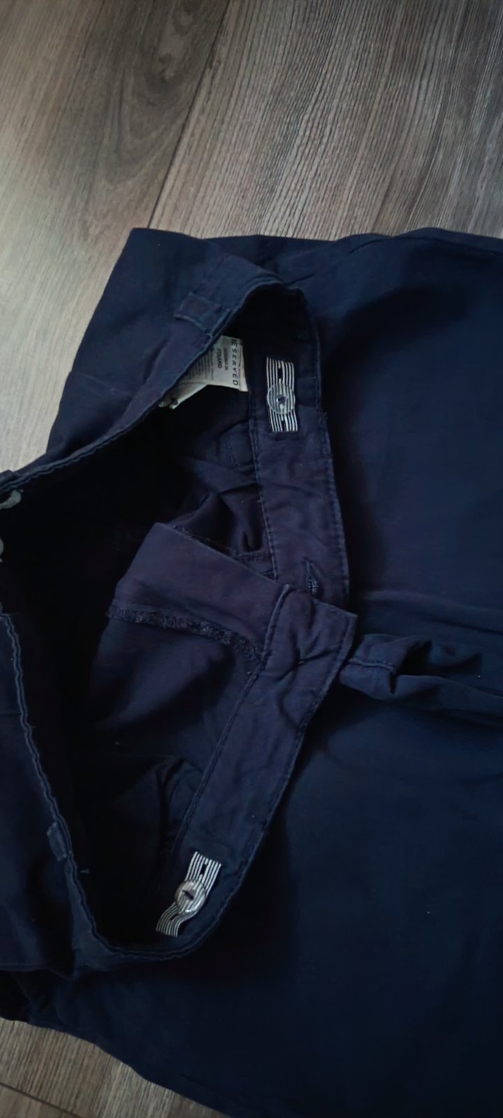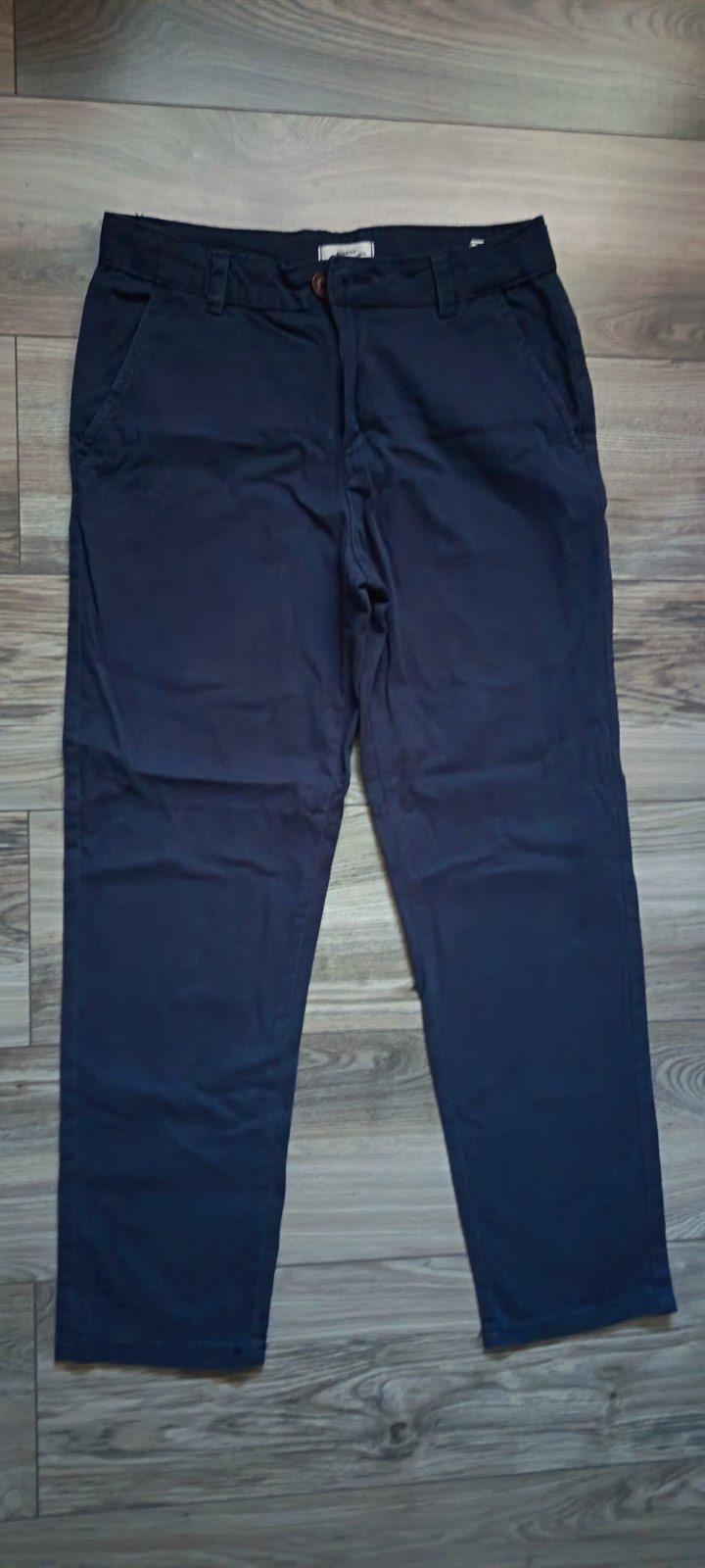 Krásne nohavice v tmavomodrej farbe s hnedým opaskom veľ.158, 1 x oblečené, super stav