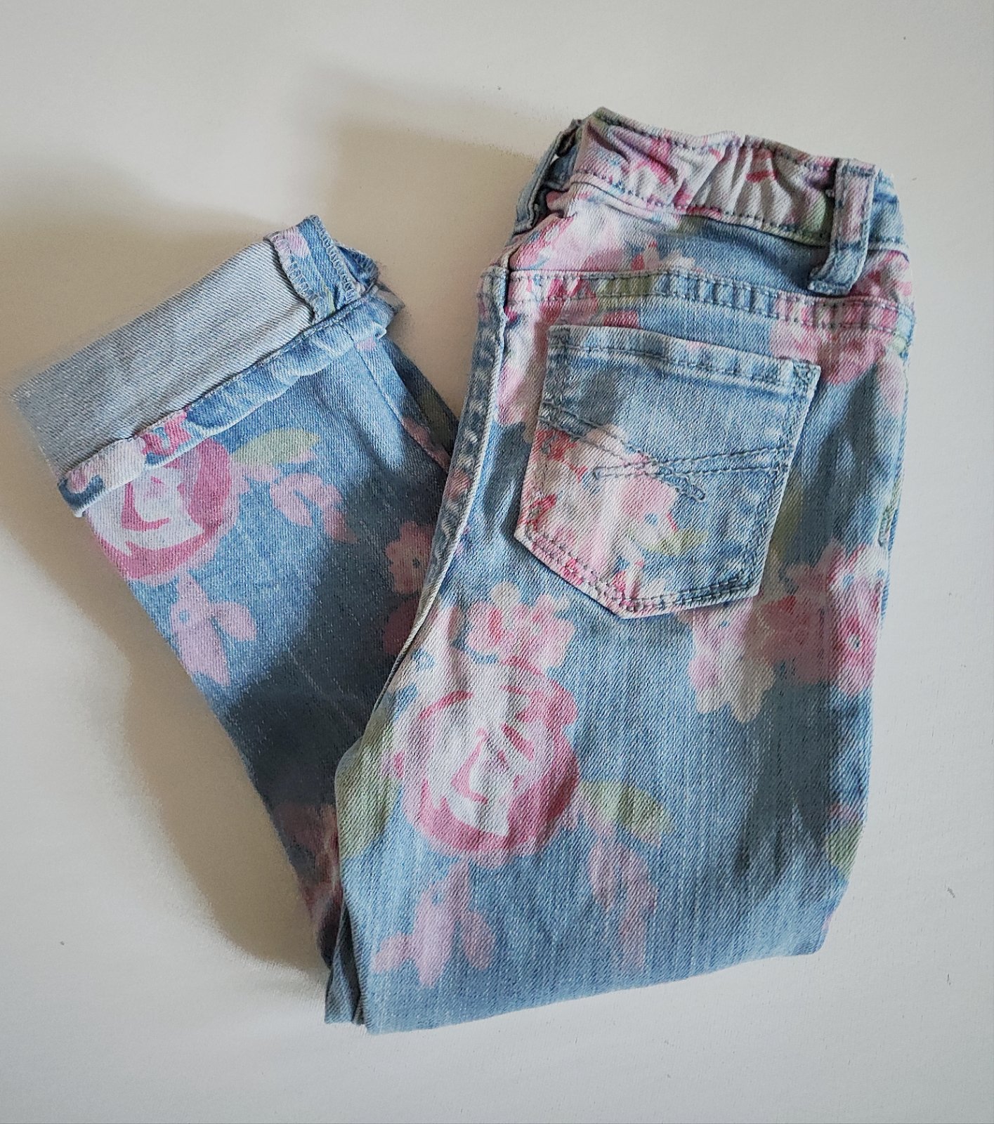 Nosené Gap rifličky pre divčatko, veľkosť na 3 roky , pás sa dá upraviť pomocou gumy a gombíkov. Vyšívané srdiečka. Na jednej nohe dole vyšúchané / viď foto. Cena 5 eur + poštovné.