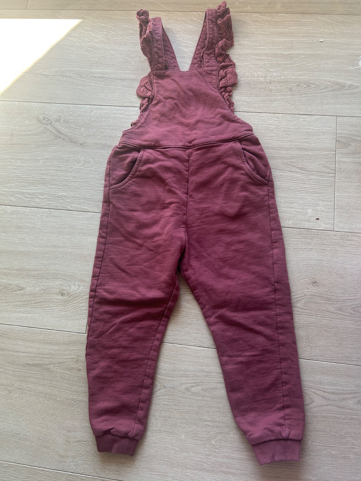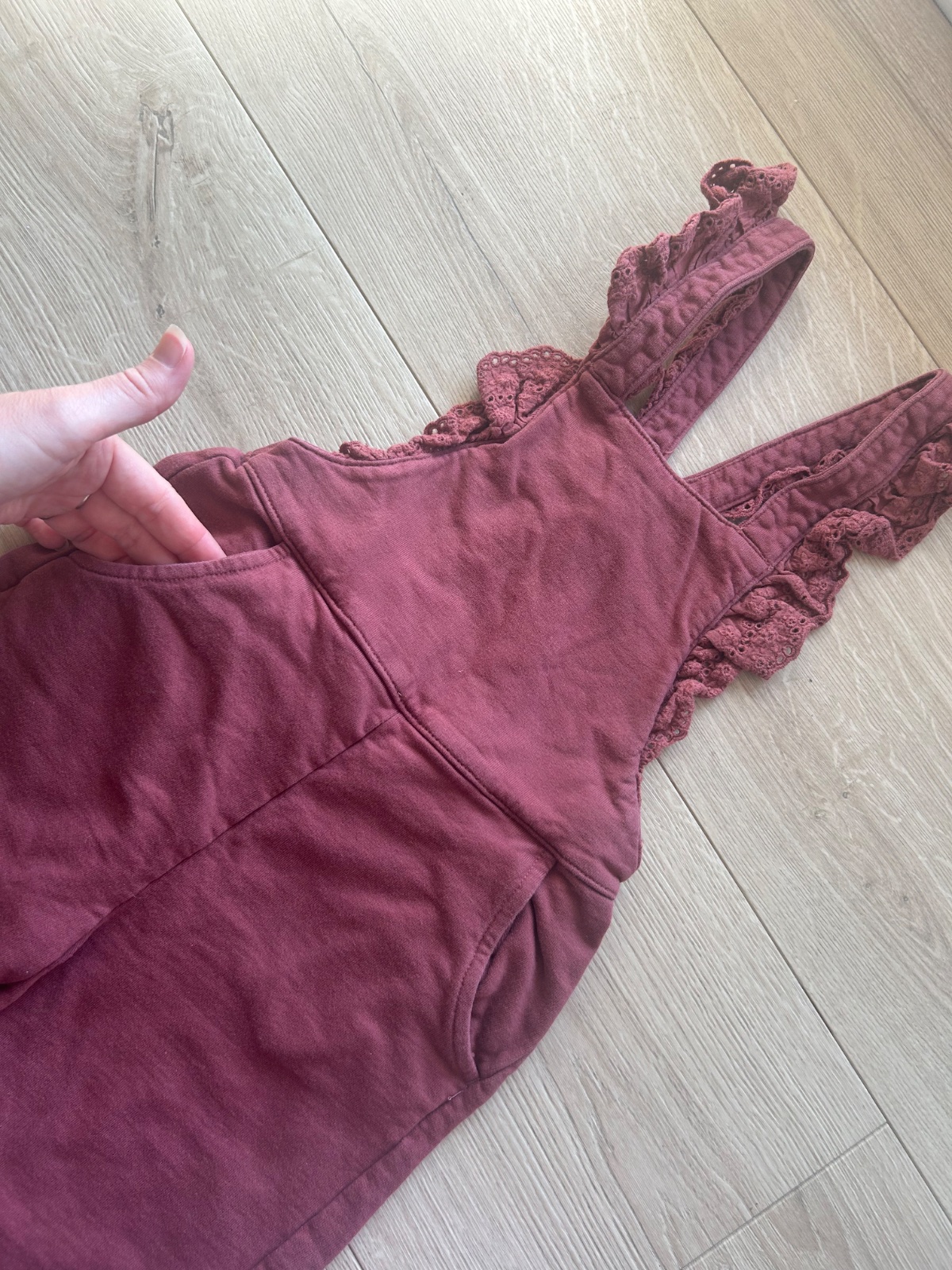 Posúvam krásne trakove tepláky newbie veľkosti 104, nosene máličko, dcérke nevyhovovali traky :( na fotke nie sú vyžehlené, avšak s bielym tričkom úkazu nádherne, na troskách je madeira, traky sú nastaviteľné čo sa veľkosti týka, je tam aj putko, aby vzadu boli pekne prekrizene. Sú takej bordovo-hnedej farby.