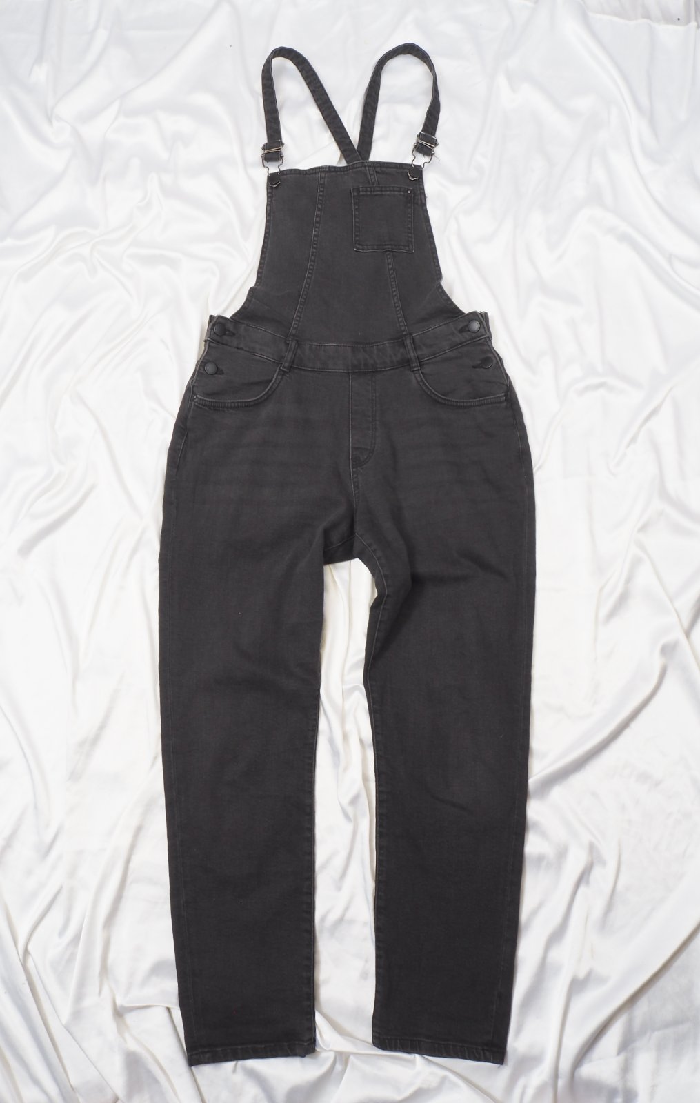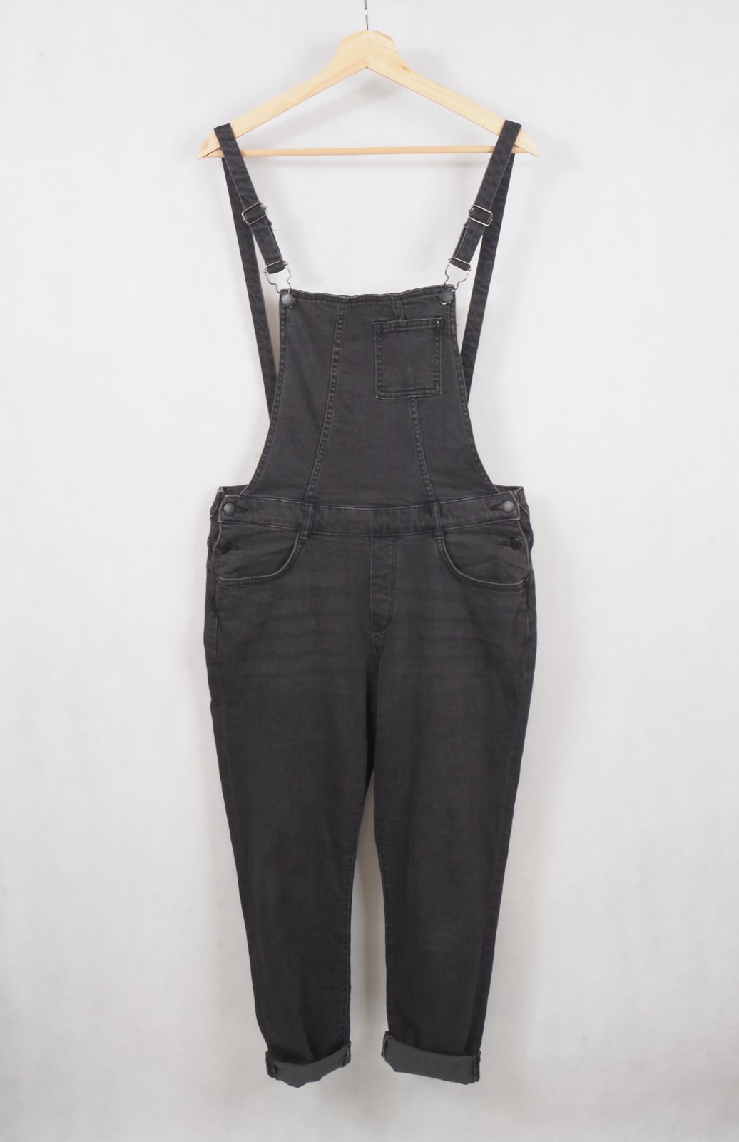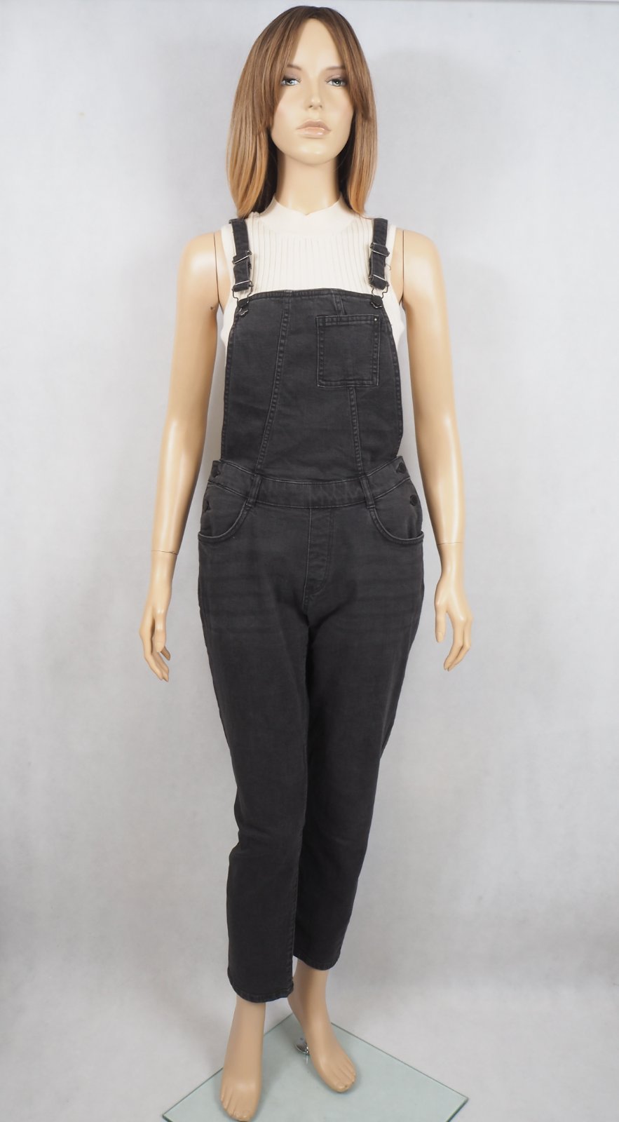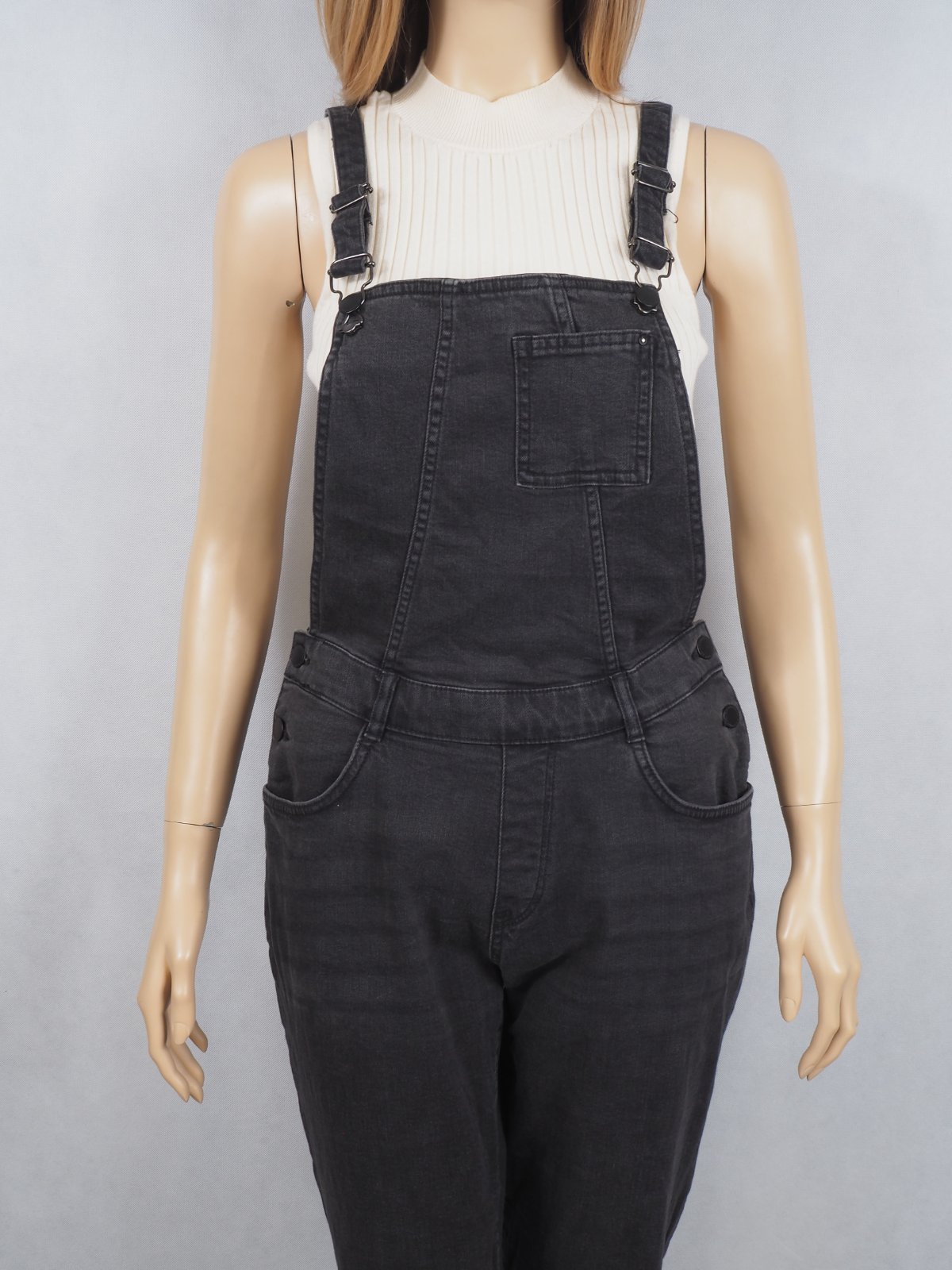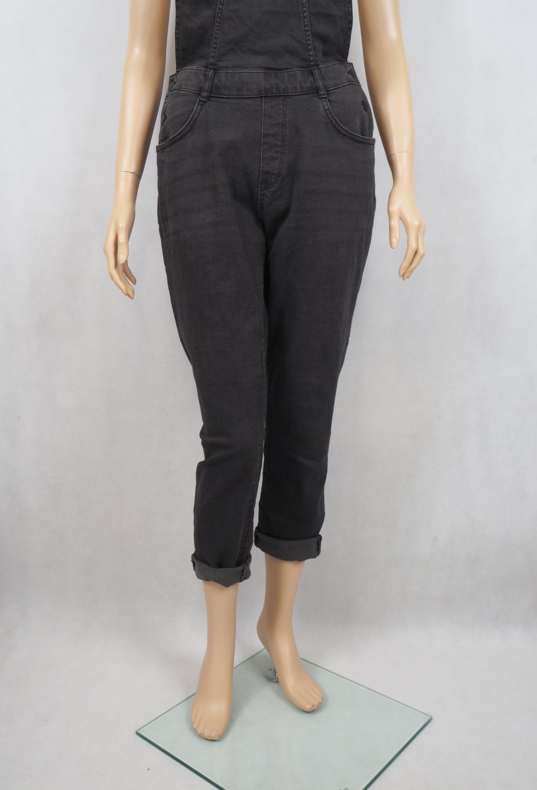 Kvalitné tmavosivé rifle na traky, sedia na 38/40, bočné gombíky, regulovateľné traky, 99% bavlna, 1% elastan, super stav.