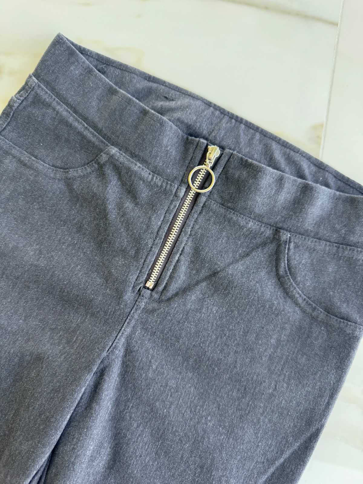 Elastický materiál, 60%bavlna+polyester a elastan, príjemné na nosenie. Zips je len ozdoba . Veľmi málo nosené.