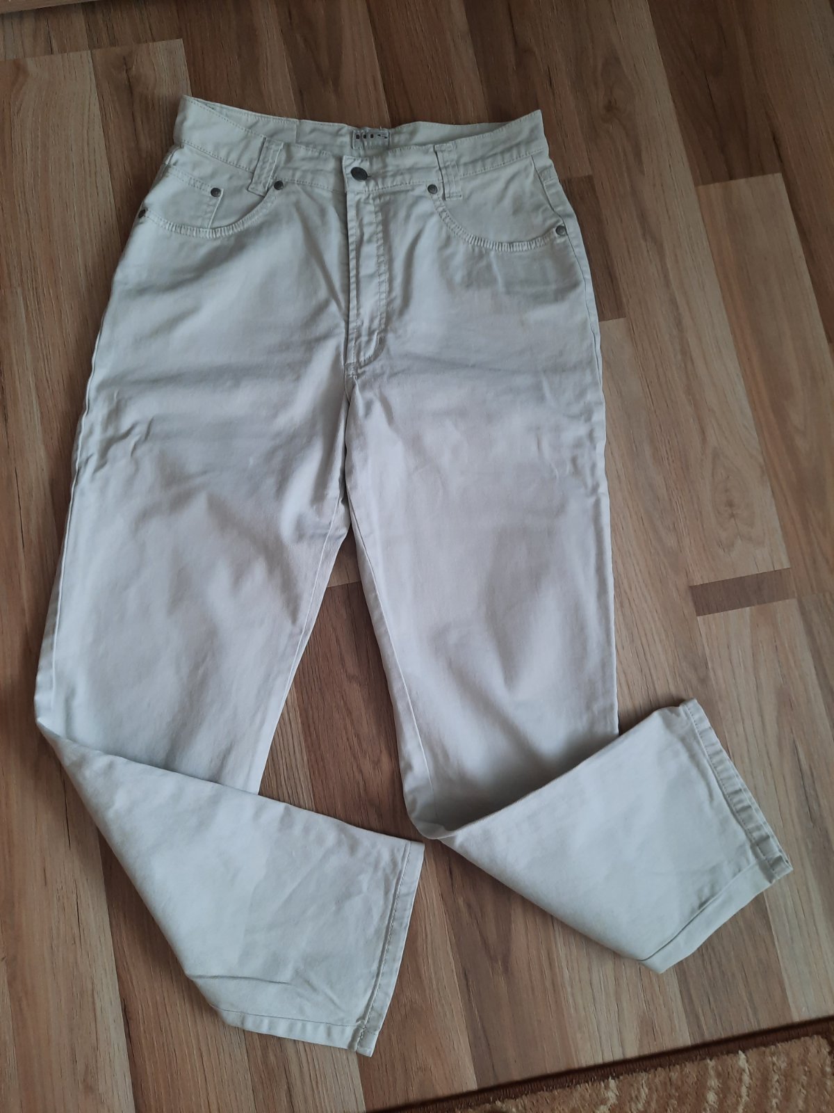 Rifle majú vysoký sed.Sú značkové,kvalitné v peknom nosenom stave, bez fľakov a dier. Farba je maslová.Veľkosť je orientačná,riaďte sa rozmermi.