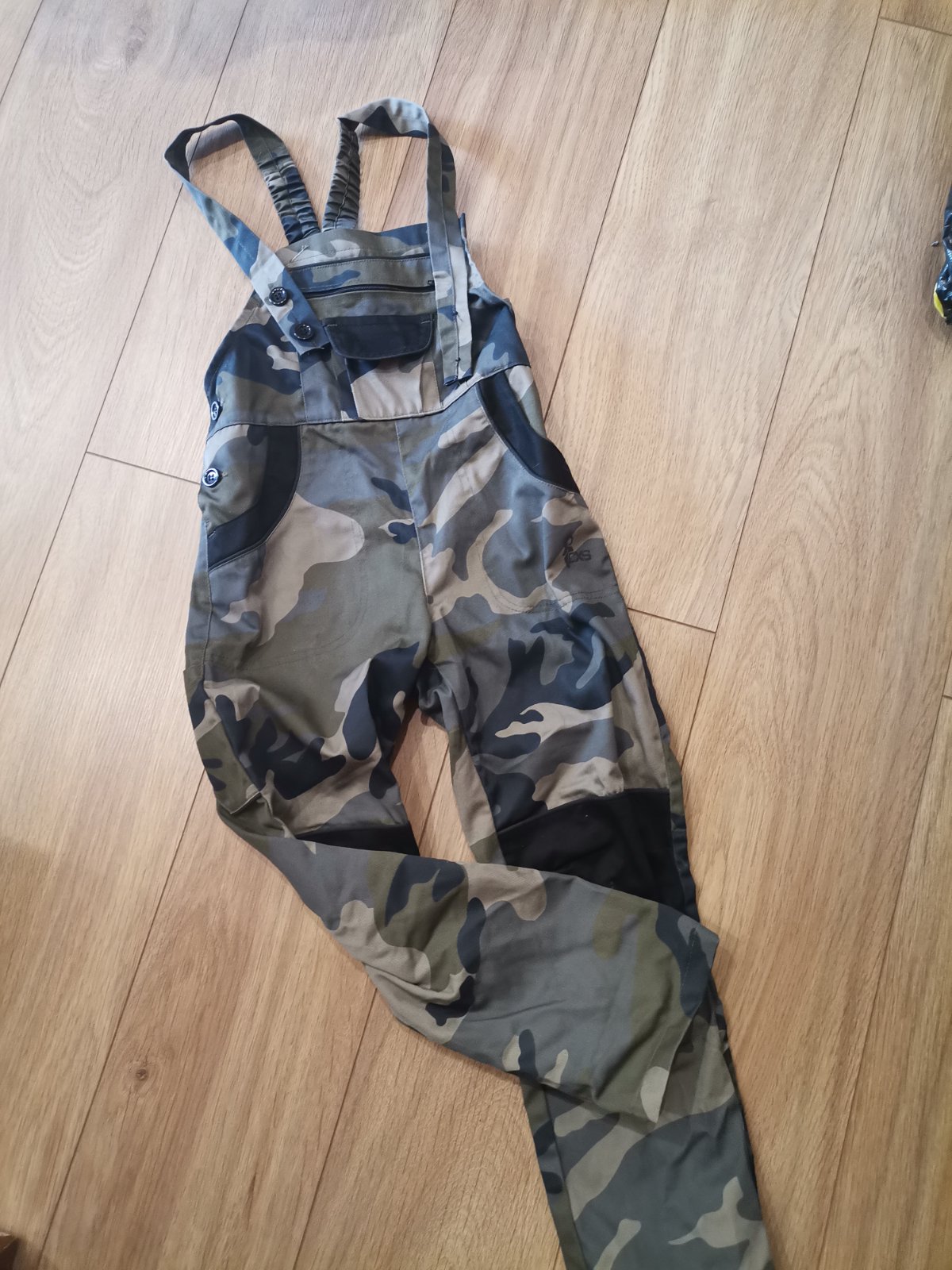 nenosené,iba oprané,vojenský vzhľad a materiál - kepper, na bokoch pri vreckách sú iba vyšité dierky,gombíky tam neboli,aby sa dali našiť podľa potreby obvodu,preto na úrovni bočných vrecák sú na o...