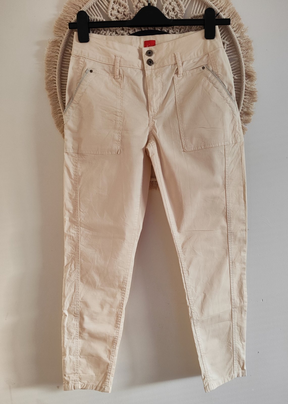 Lanove kremove nohavice s opaskom a sikmymi vreckami. Volnejsieho strihu. Velmi prijemne na nosenie.