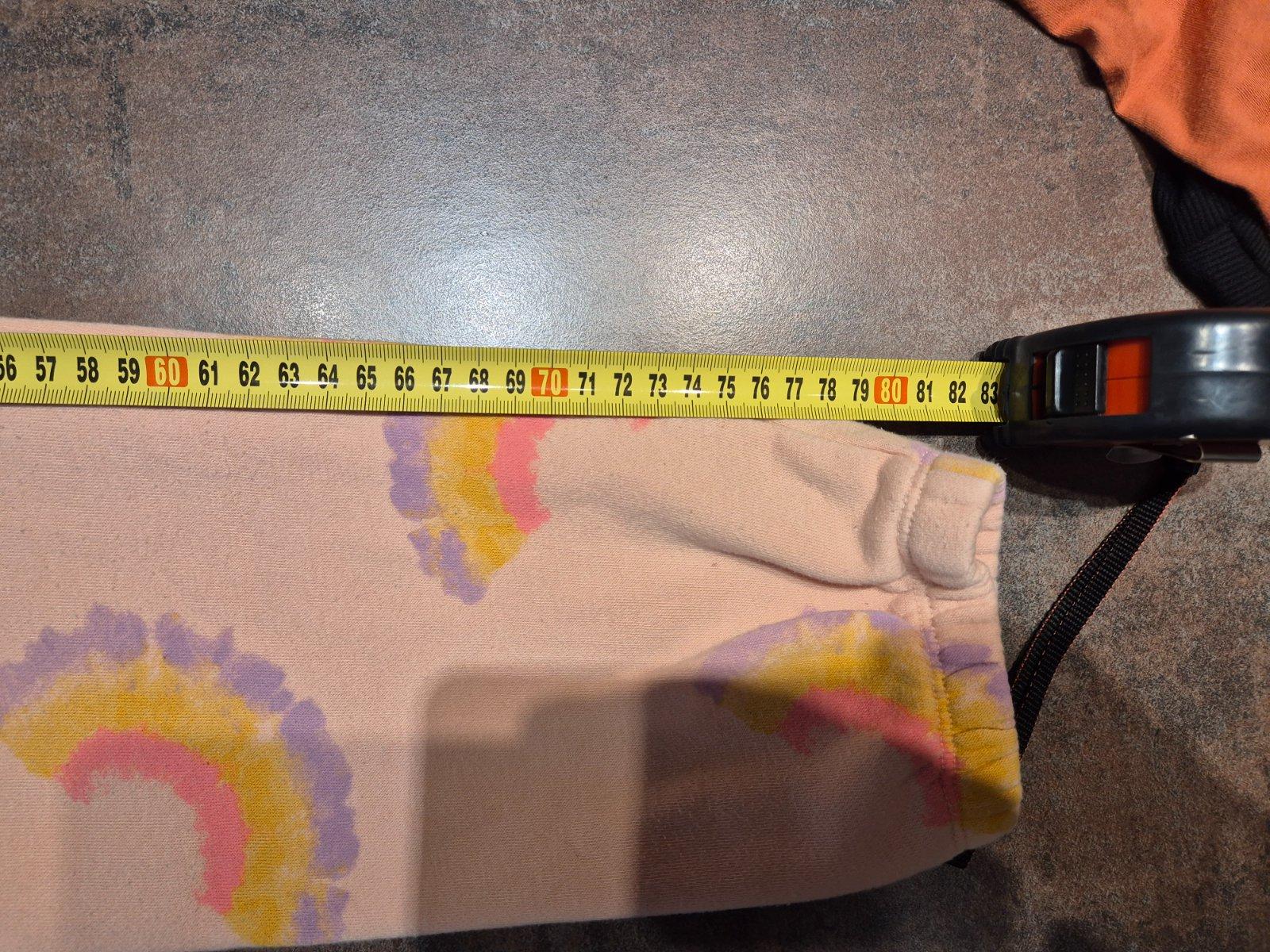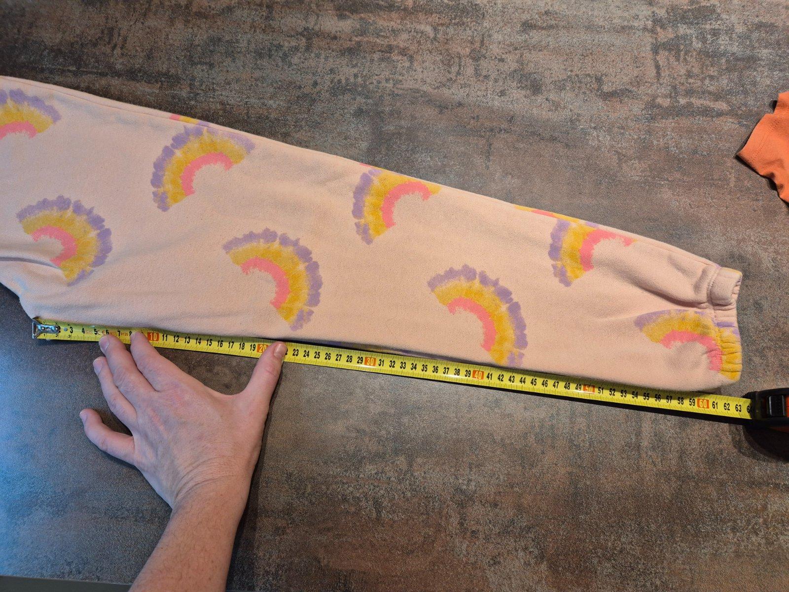 Krasne vesele zateplene teplaky, vnutorna dlzka 63 cm, vonkajsia 82 cm. Gumicky na clenkoch aj v pase.