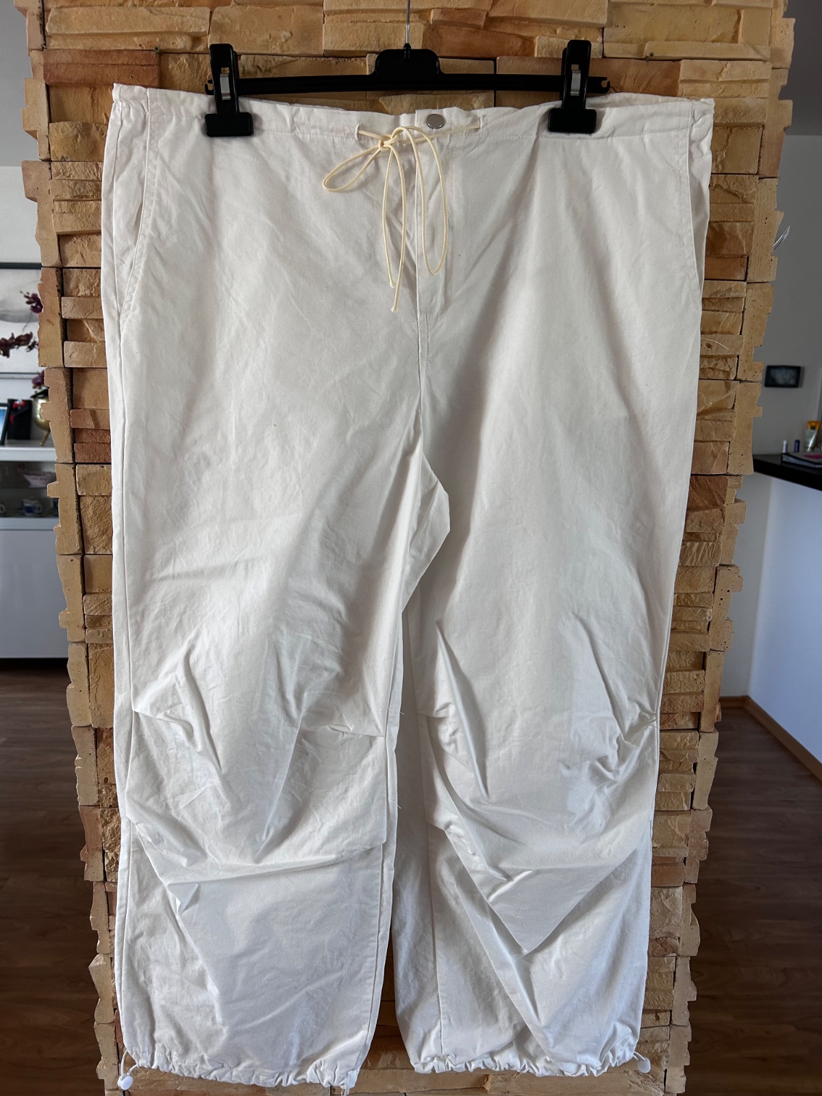 Panske klasicke nohavice,bielej farby.100%polyester.super stav,ako nove. se22 Rozmery: vel.M,cez pas 2x44cm,cez boky 2x53cm,sedy 27/40cm,širka stehna 2x33cm,širka spodku 2x21cm,dl 99/78cm ...
