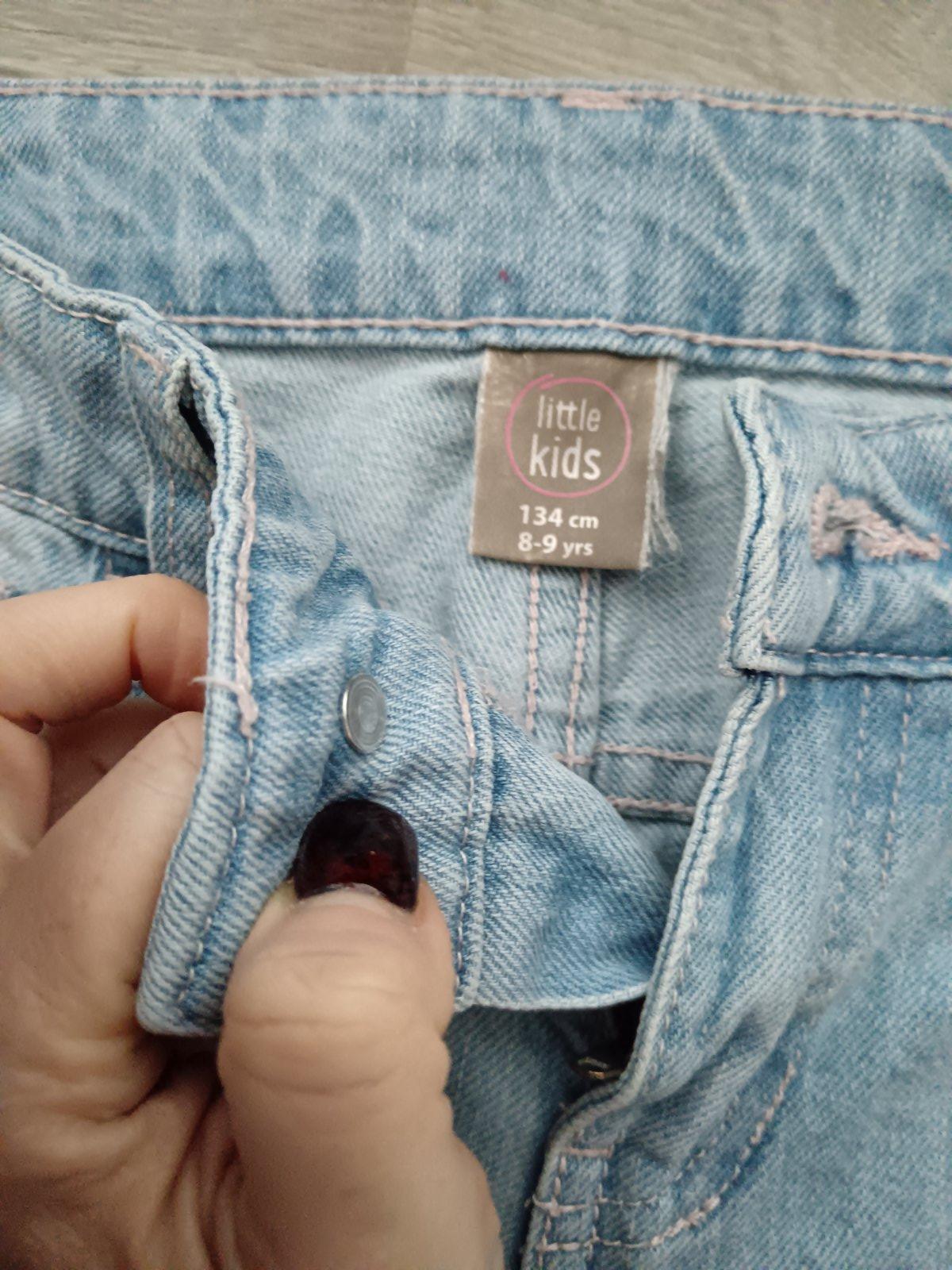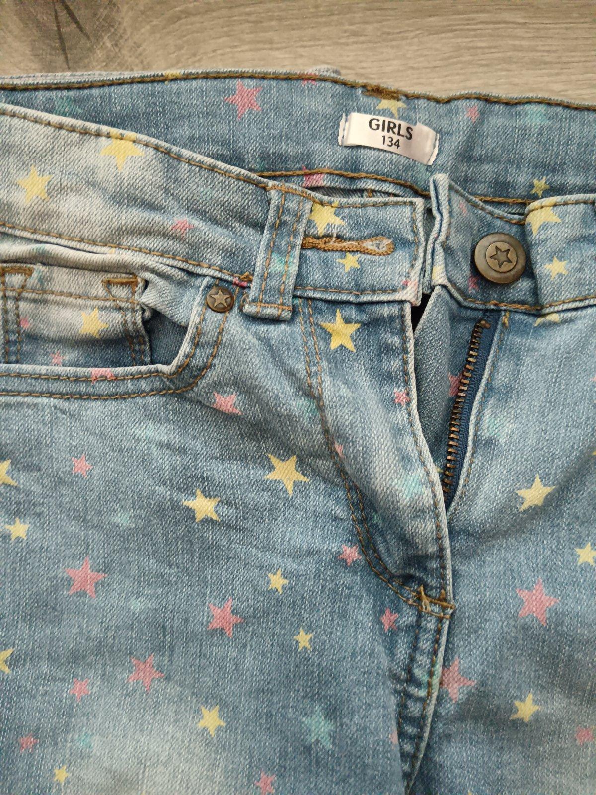 Pekné mäkké dievčenské rifle, veľkosť 134, nové s visačkou. Kúpené pre dcérku na Vianoce, ale sú jej malé. Dĺžka 84cm, pás v kľude 31cm a natiahne sa do 33cm. Alebo sa dá stiahnuť gumičkami zvnútra...