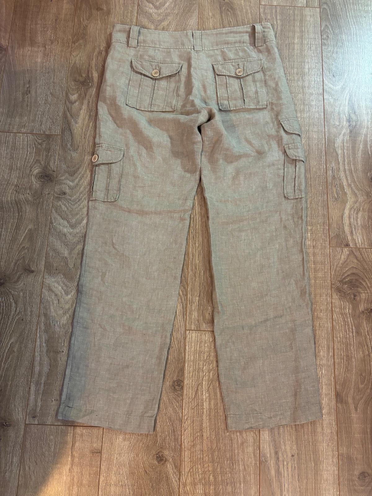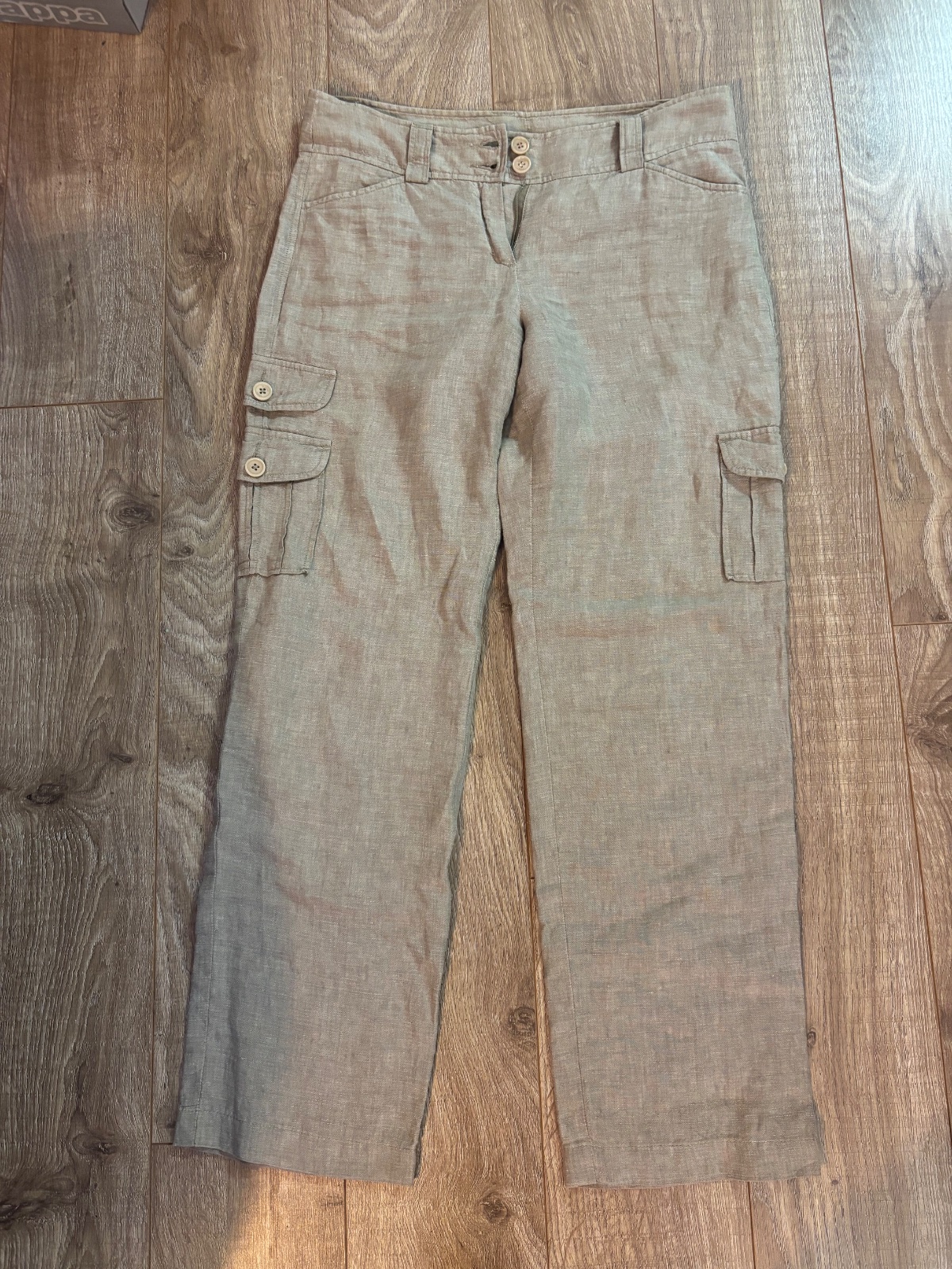 Nohavice zo 100% lanu. Rovny strih. Nizsi pas, sirka 40cm. Bez poskodeni, predsvam, lebo su mi male.