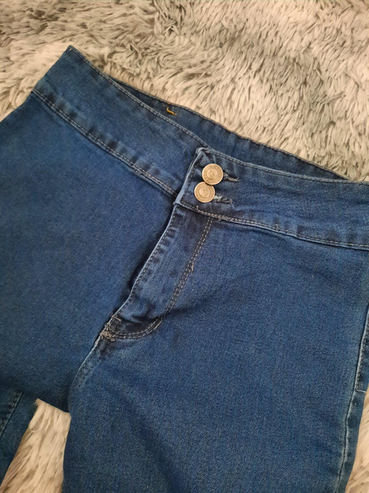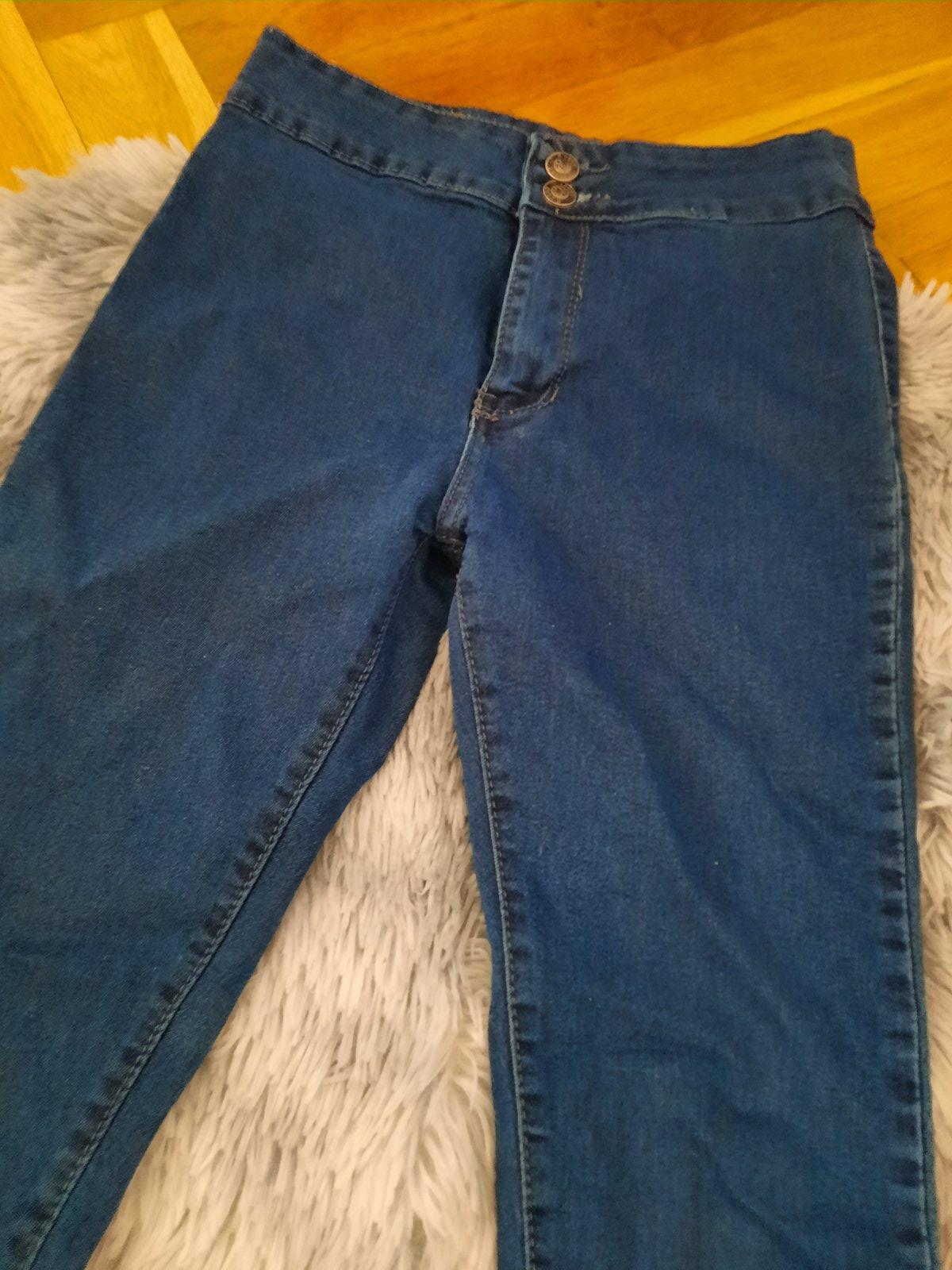 Predám rifle, takmer nenosené, len 1-2 x oblečené, Veľkosť 34-36, farba tmavomodrá so sivou, tmavšia ako na foto, skreslil mi to blesk, je to poľská výroba.