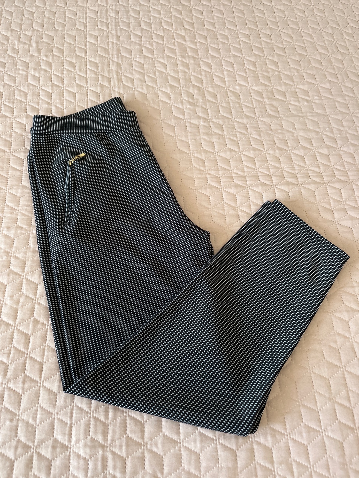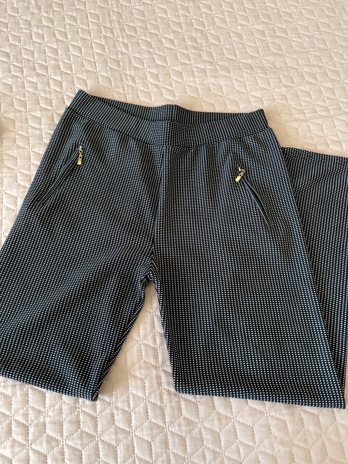 Bez znamok pouzivania, super elasticke, tenucke, prihemne, pas v gume, bocne vrecka na zips, pas 40-54 natiahne, dlzka 97, daju sa povytiahnut prisposobit ako tristvrtaky, cena 12 plus postovne