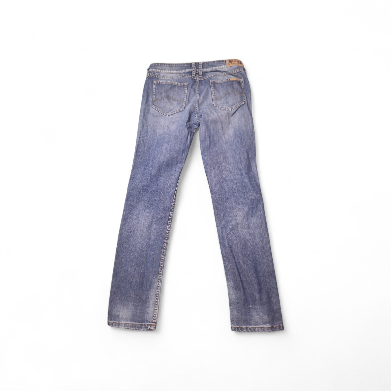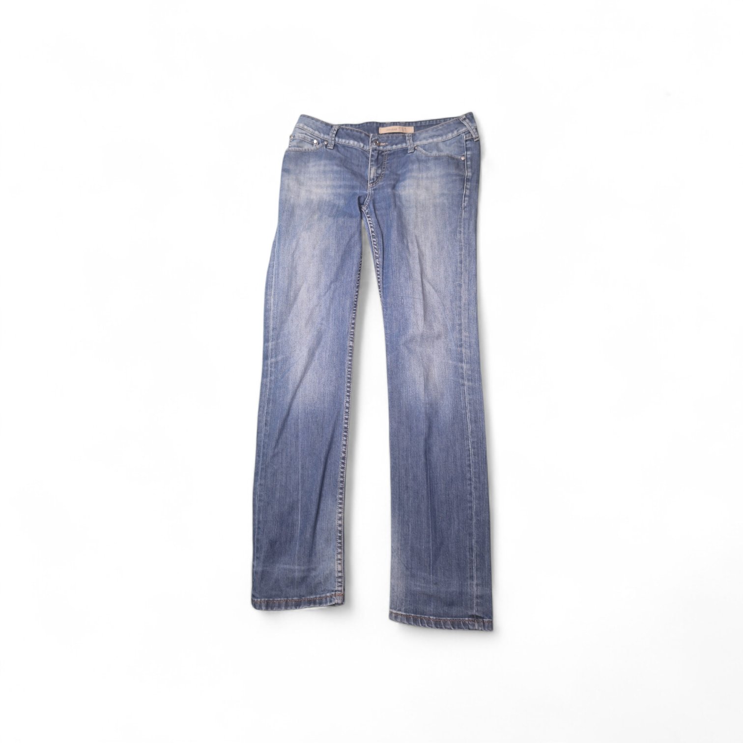 Dámske značkové rifle. Zapínanie je vpredu na zips a gombík. Dĺžka je 100cm,obvod pása je 80cm a obvod bokov je 90cm. kód 1724