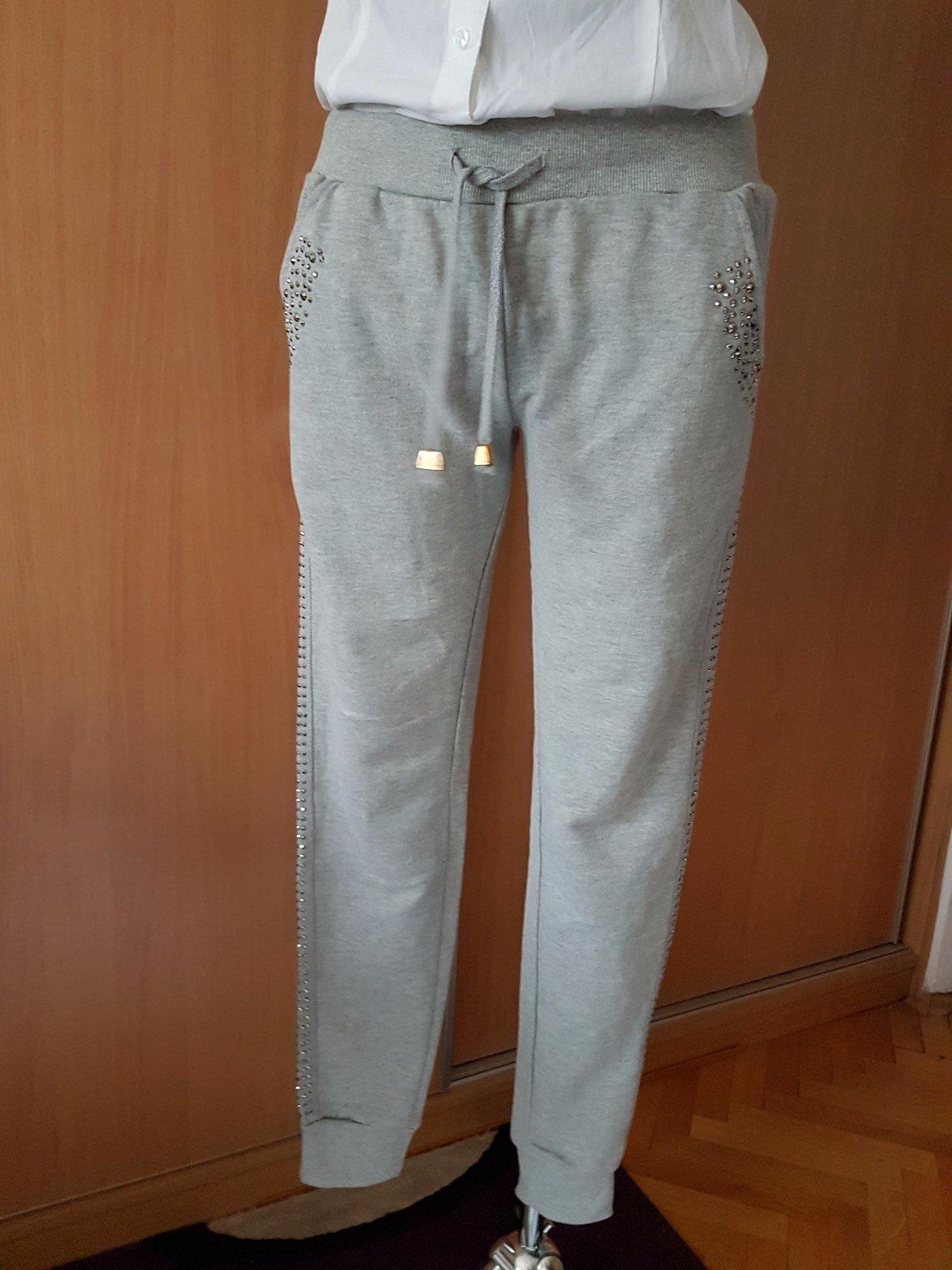V páse na gumu a ozdobné šnúrky. Krásne štrasové detaily po bokoch a na lemoch.