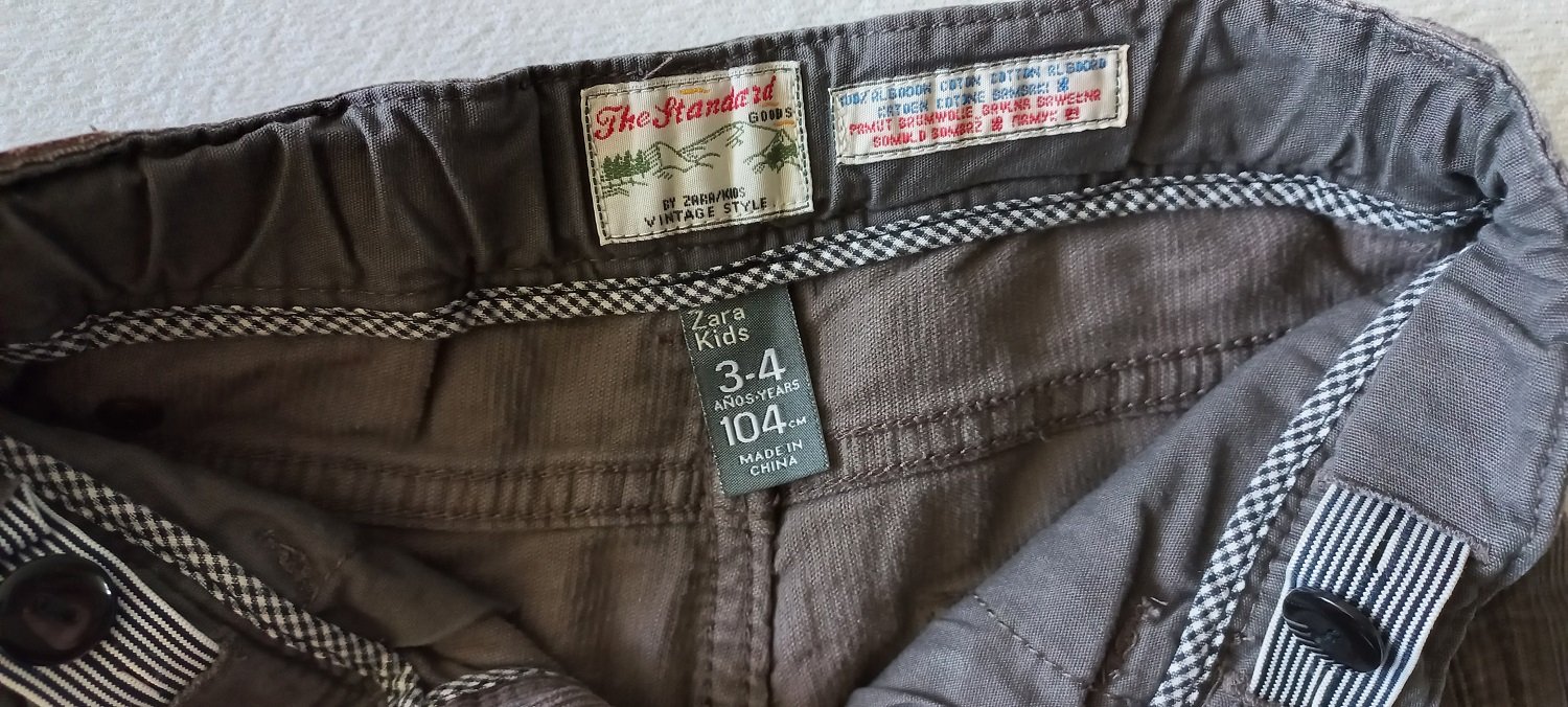 Menčestrové nohavice, veľkosť 104, značka Zara. Nosené, vidieť nosenie, nepoškodené. V páse regulácia, zapínanie na gombík. Rozmery sú na fotkách, 100% bavlna. Mám viacero detských vecí, môžete si zostaviť vlastný balíček. Pri kúpe viac vecí zľava.