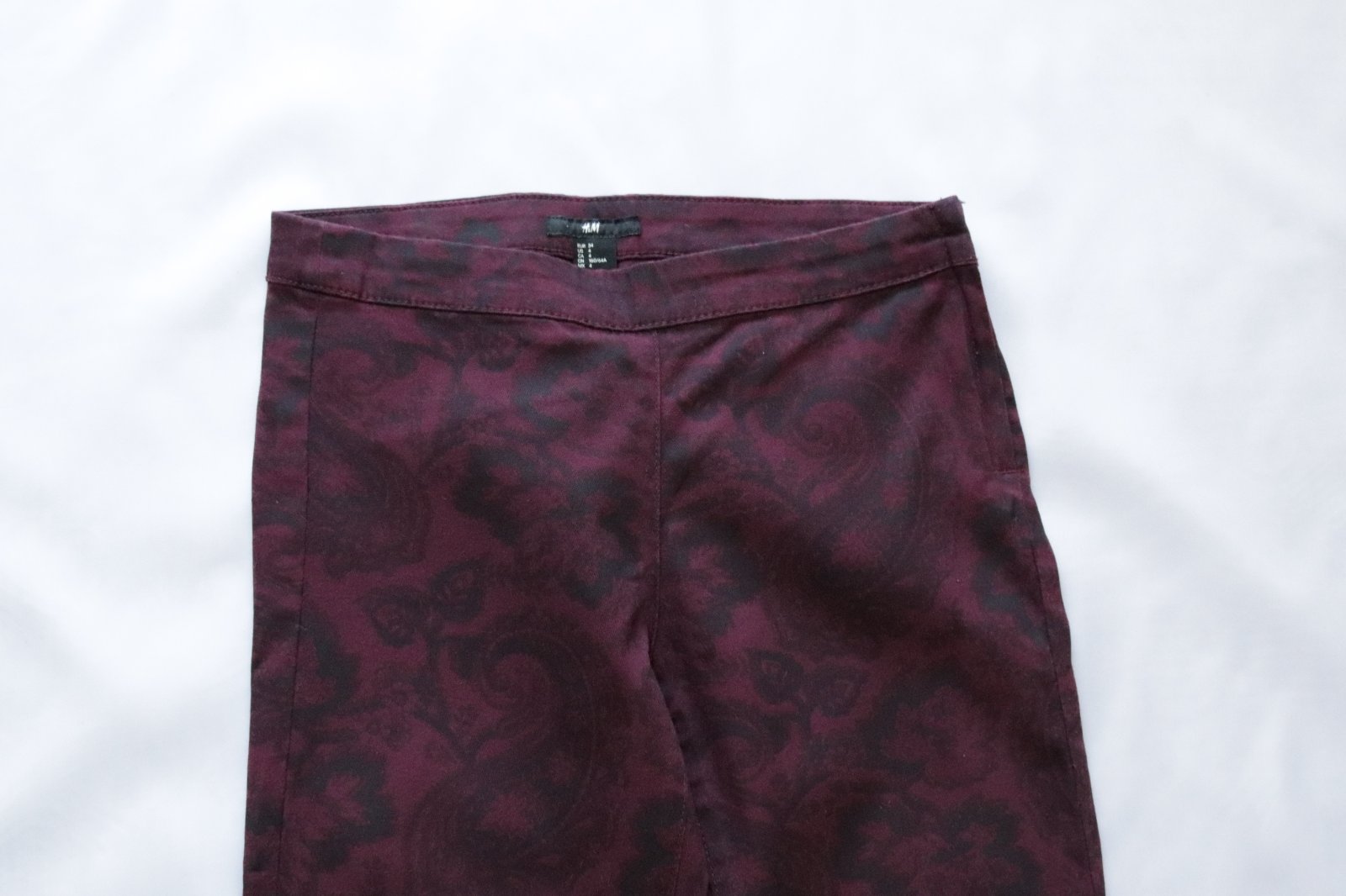 Elastické bordové nohavice H&M s vysokým pásom v bezchybnom stave. Sedia na veľkosť S, orientujte sa podľa rozmerov.