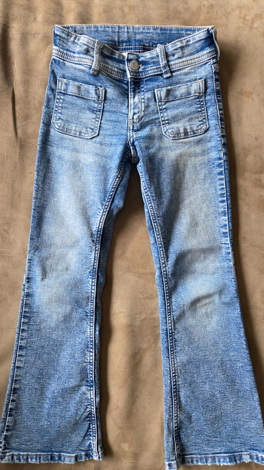 Krásne rifle pre dievčatko z H&M model flared leg, príjemná mäkká riflovina, nastaviteľný pás, veľ 128, kupované nové, oblečené asi 2x.