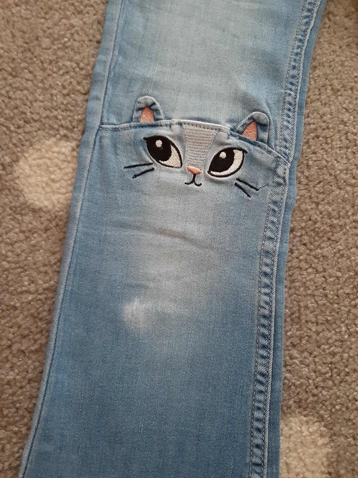 Tenké rifle H&M vel.122 s obrazkami (mierne šuchnutie na 1 nohe), druhé su OVS vel.128 ale sedia na vel.122 ( oblečené 1x )