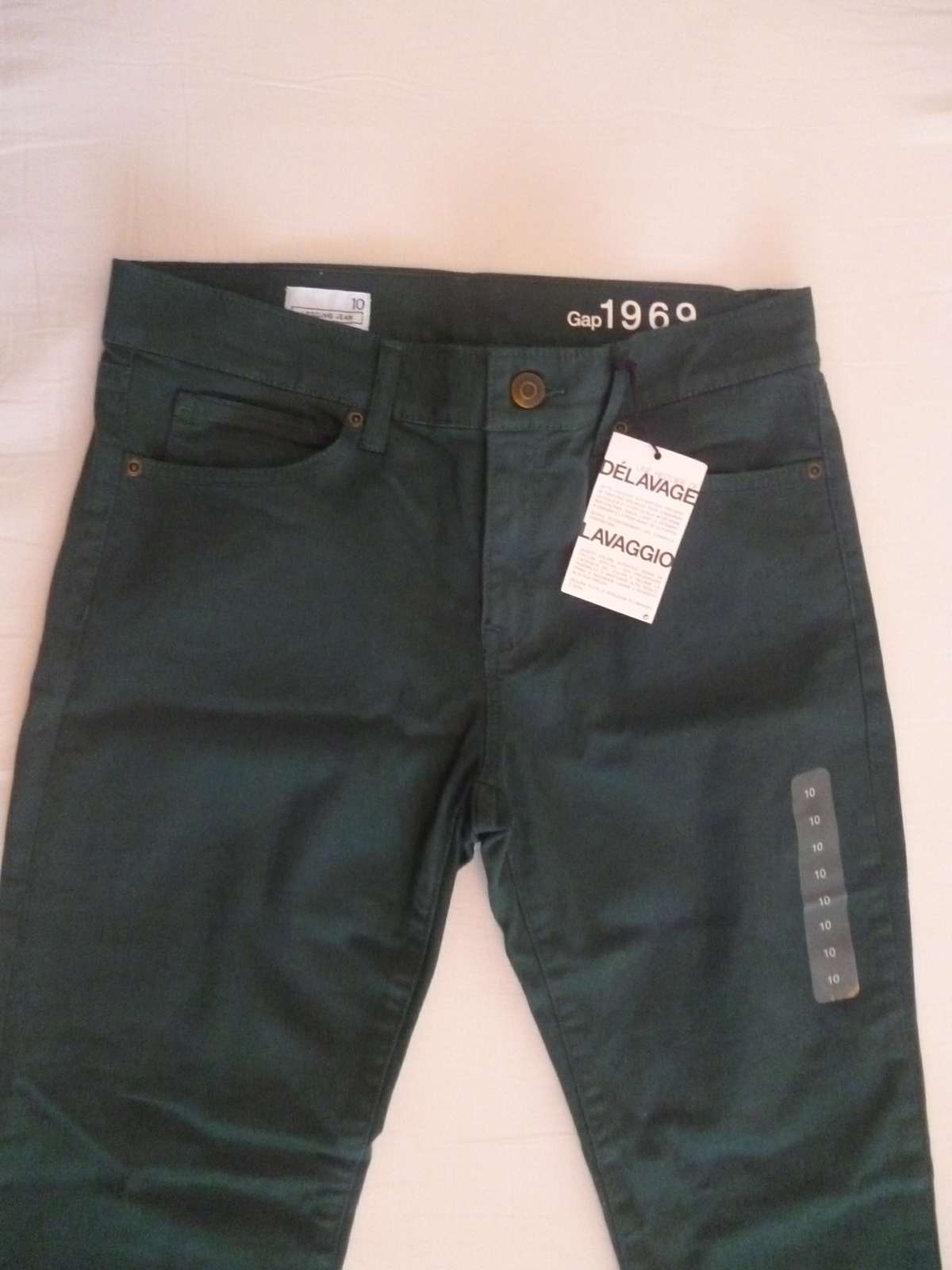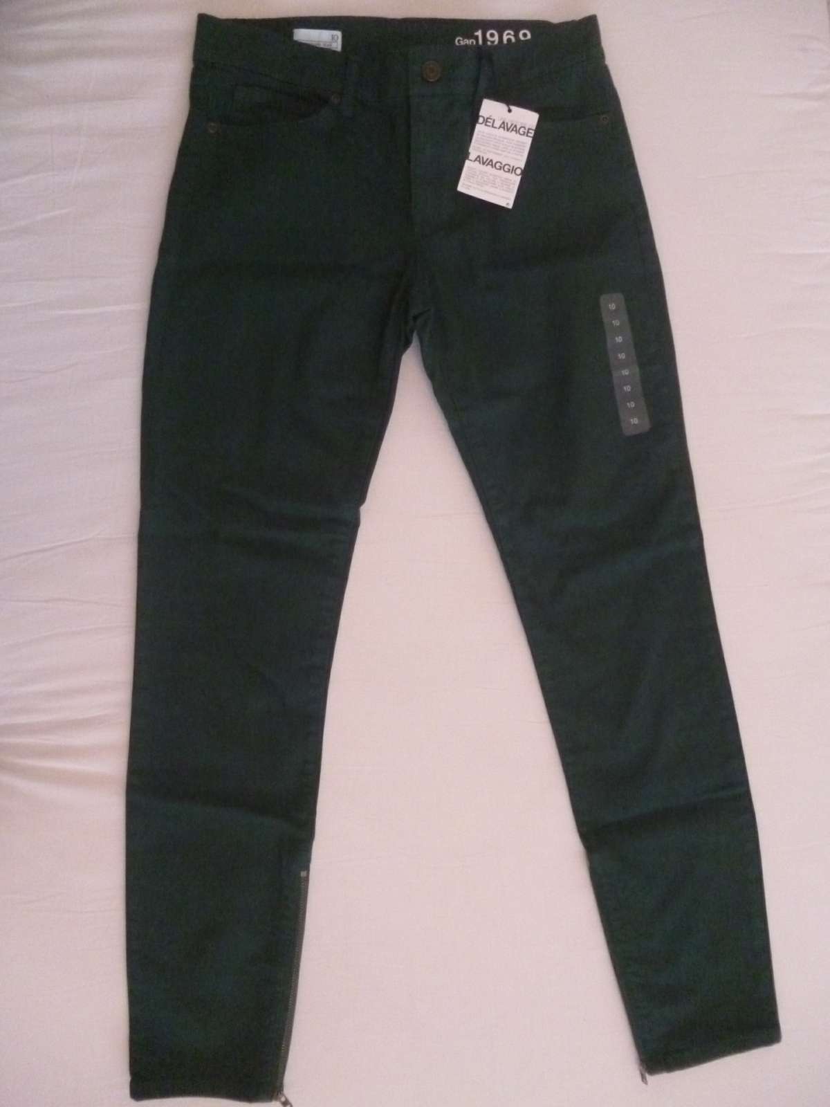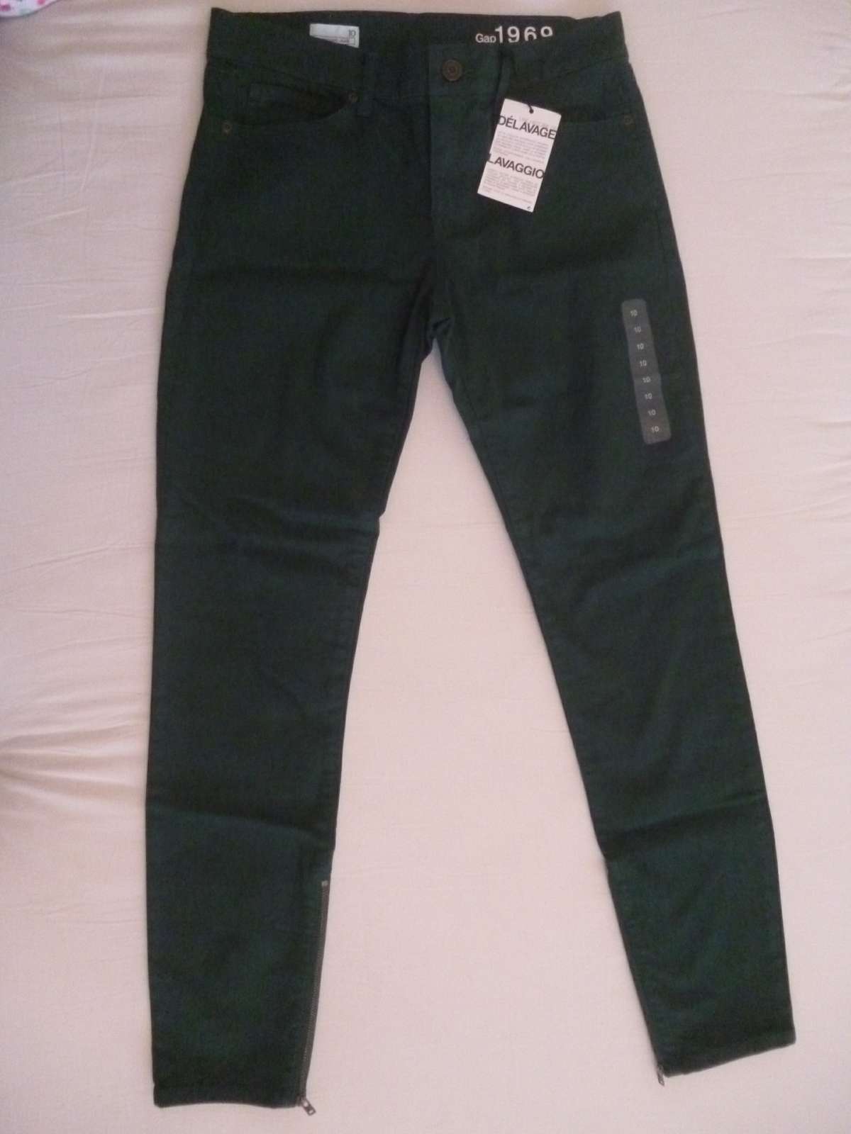 Nenosené s visačkou - tmavozelené legínové džínsy