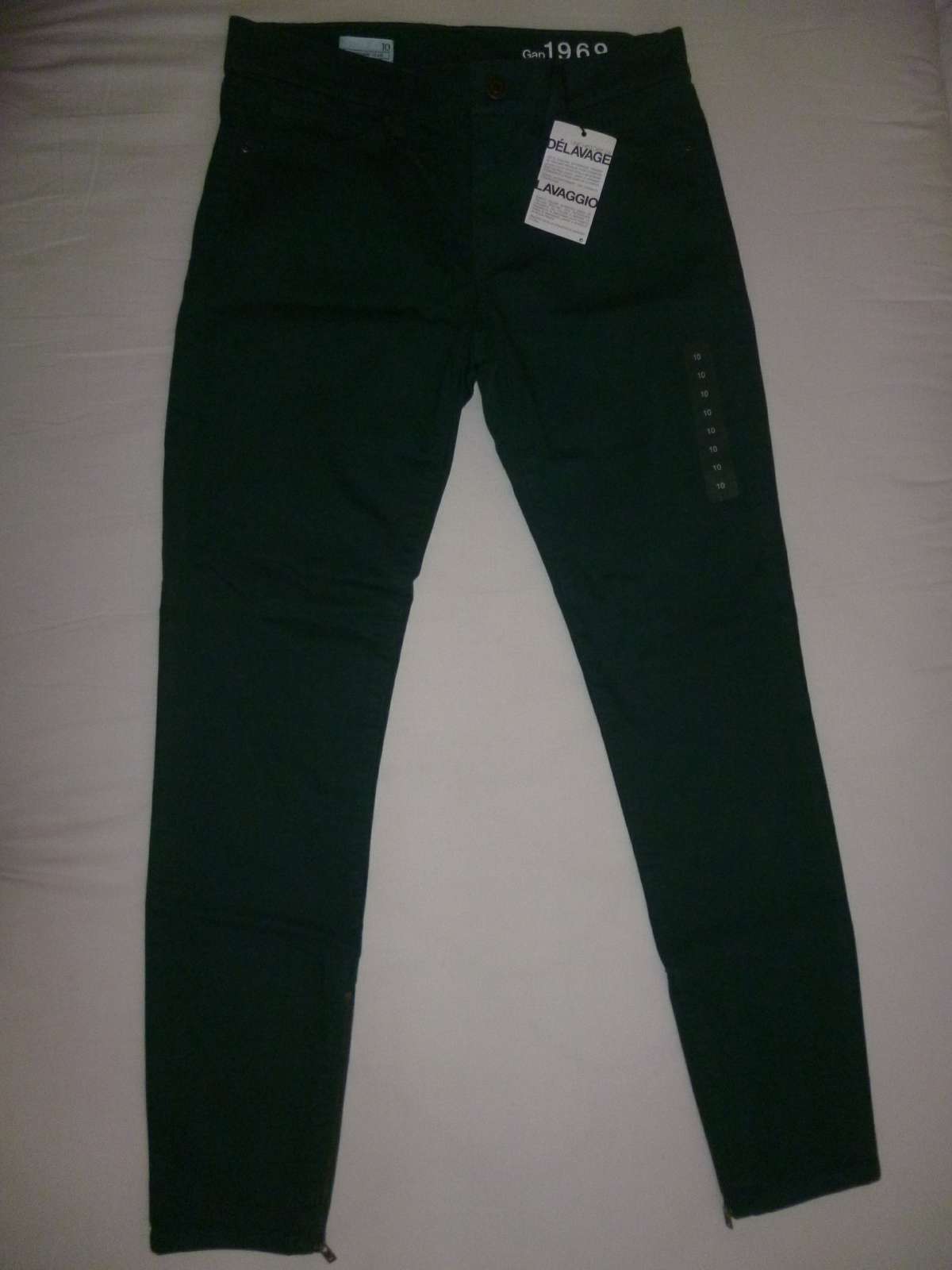 Nepodarilo sa do nich schudnúť:((, tak nech slúžia niekomu inému. Krásna tmavozelená farba (tzv. Tropic Green, nedala sa dobre zachytiť foťákom), dole po bokoch sú zipsy, s prímesou elastanu, čiže sú jemne strečové. Rozmery: Obvod pása cca 76 cm, dĺžka nohavice od pásu cca 92 cm, od rozkroku cca 68 cm.