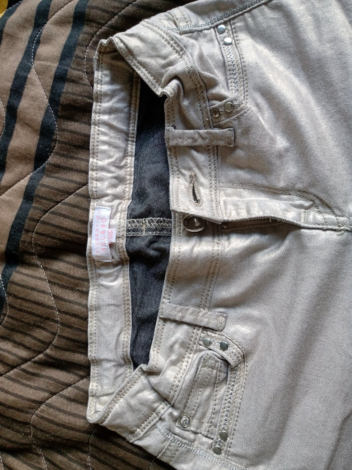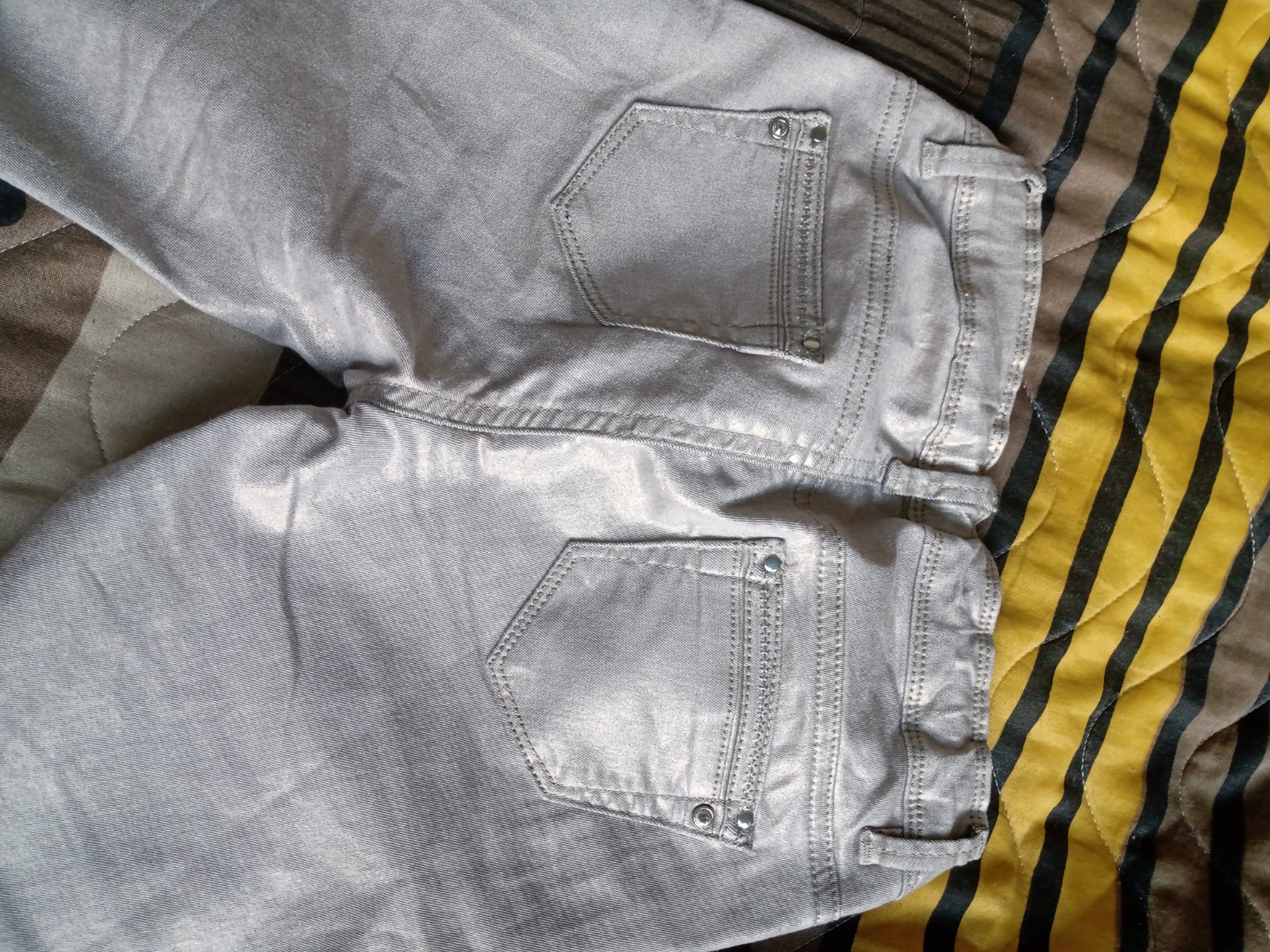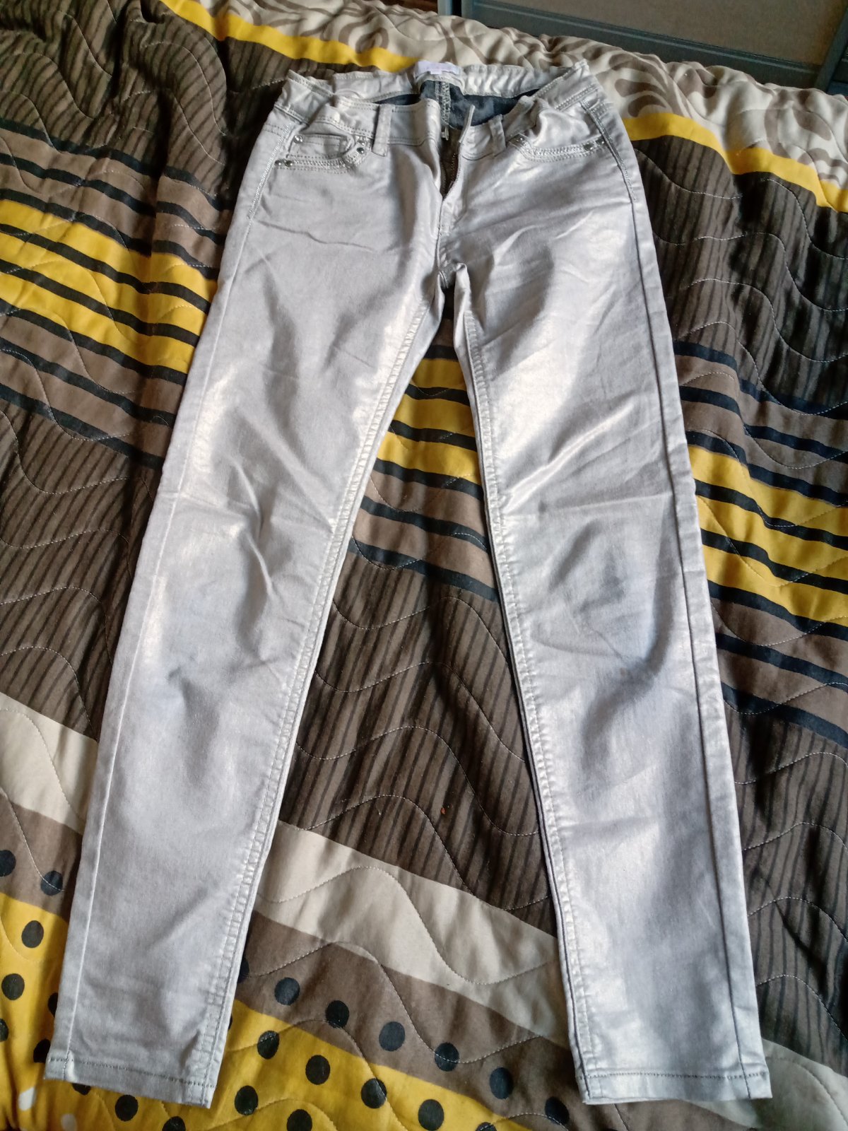 Zaujimave trblietave rifle,elasticke mierne, zlato striebriste. Pas stahovacia gumka vnutri