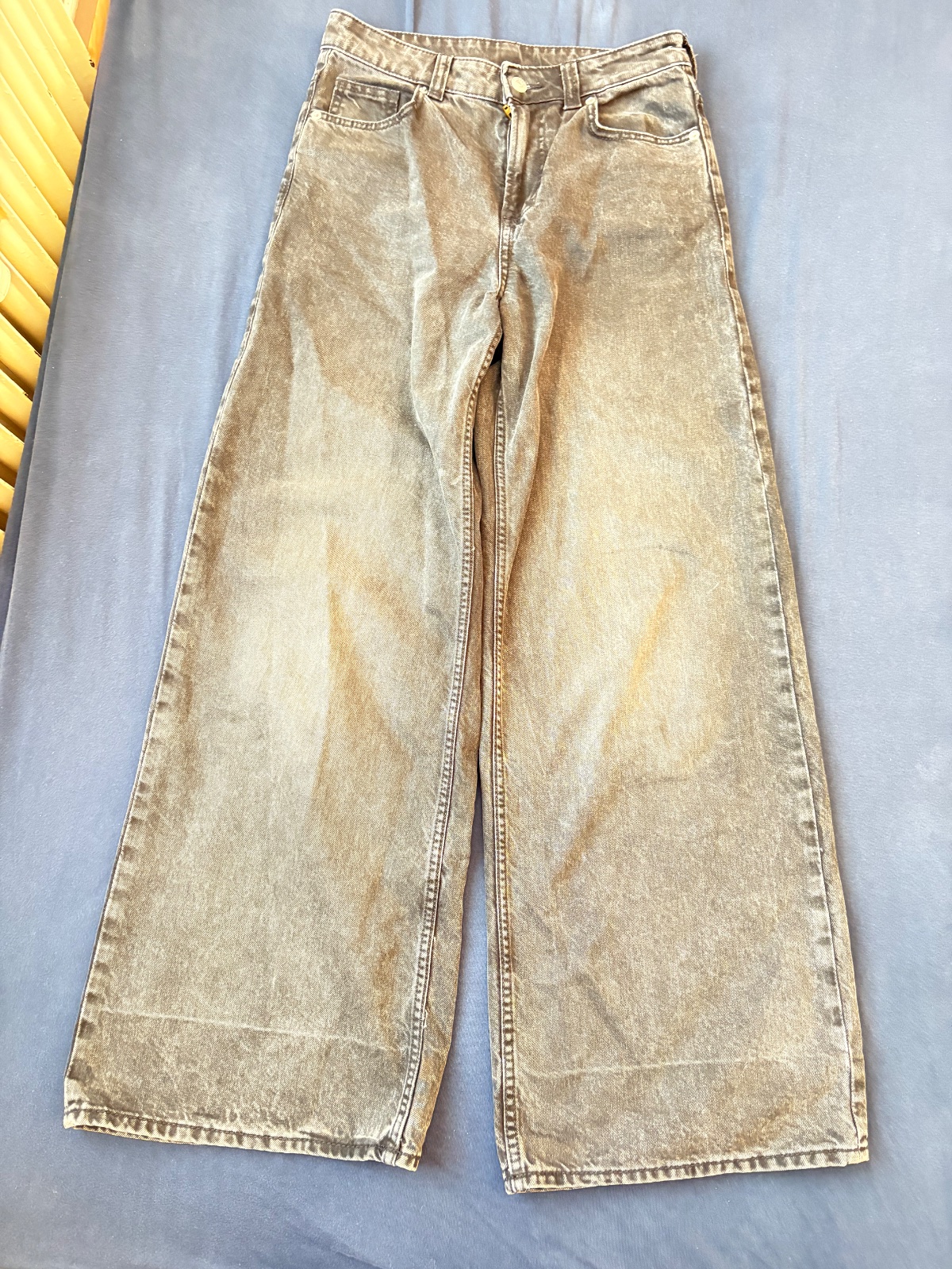 Raz oblečené, pružné skinny, vyšší pás, veľkosť 34, pás 33-38 x 2 cm, dĺžka 95 cm,vnut.d.71 cm,sedy 26/35 cm