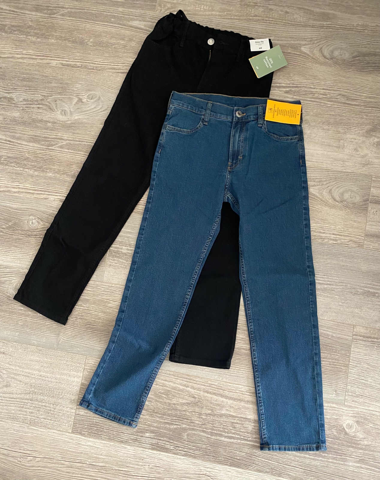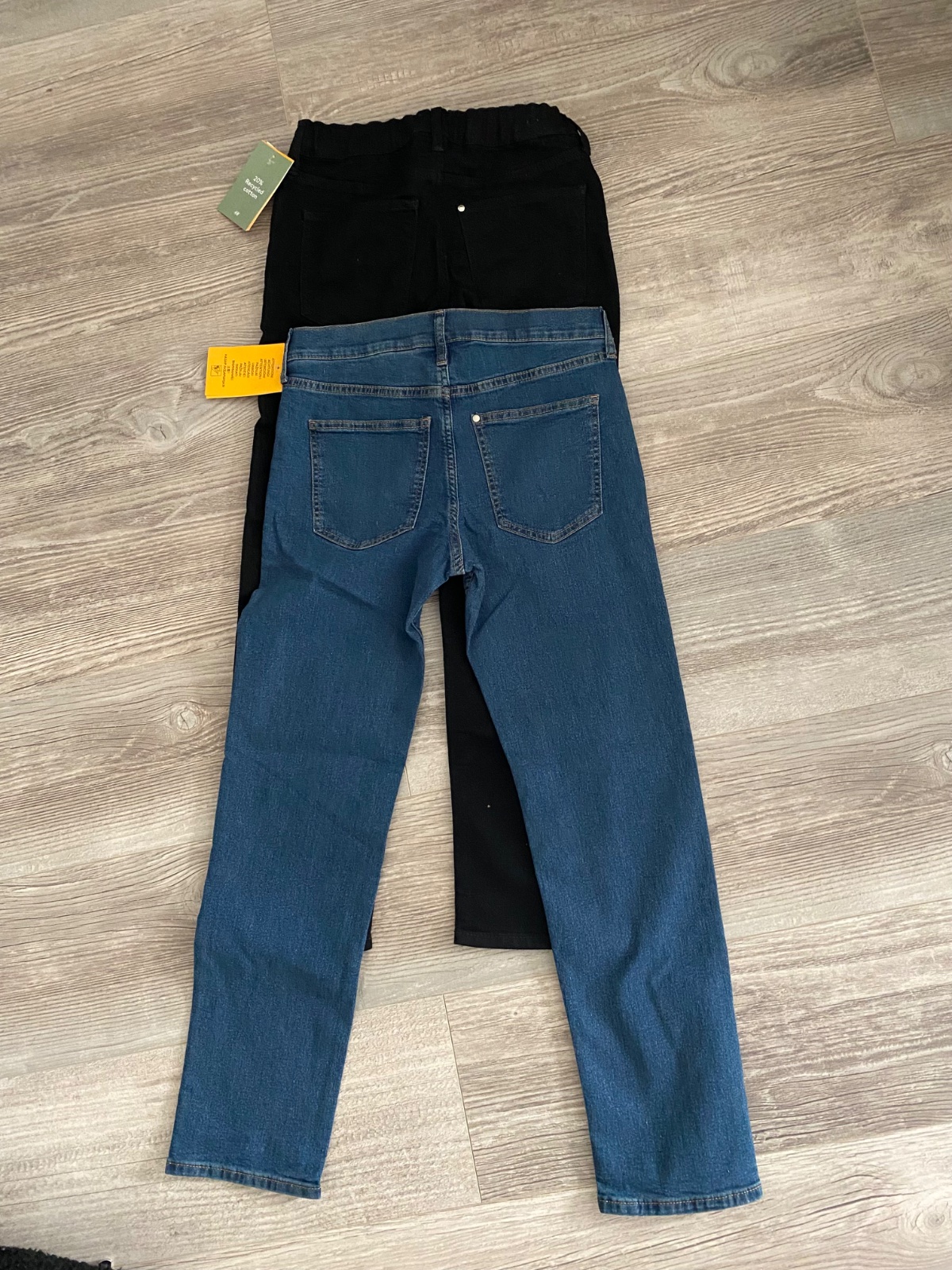 Nové rifle s visackou. Nestihla som vrátiť. Je písané že sú slim ale podľa mňa skôr regular. Môjmu synovi (spagetke) sú široké. Cena je ako som kúpila za obe 10€ + poštovné 3,50€.