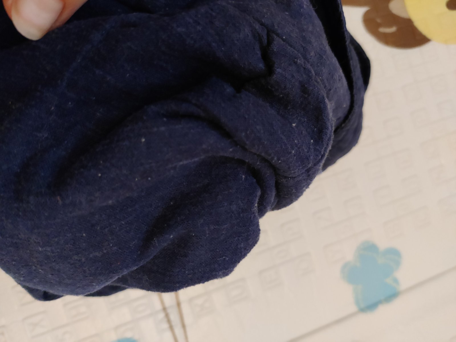 Tmavomodré hrubé podsite bavlnenou látkou, bez poškodení