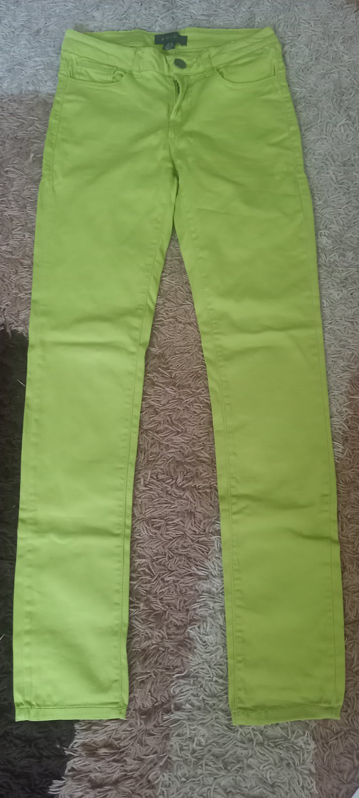 Super stav. Až na zafarbenie okolo gombíka. Dĺžka nad členky. V páse guma. Pás v kľude 31, dĺžka 93, šírka na foto