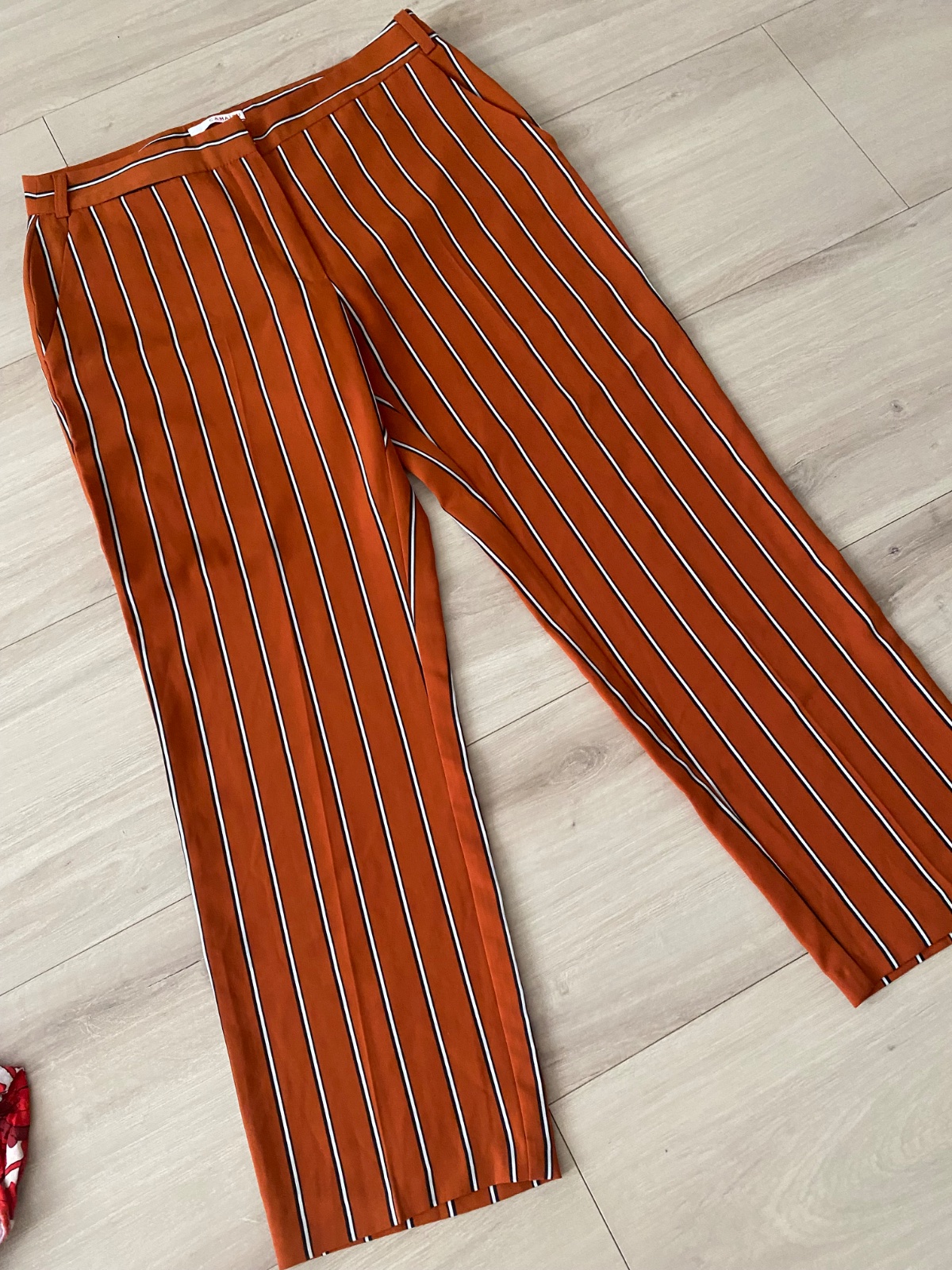 Letné nohavice, rovný strih, na nohách sú voľné čo je veľmi pohodlné, šírka nohy je 52 cm, materiál 55%ramia (materiál podobný ľanu, primerane krčivý), 45% bavlna. Sú veľmi málo nosené.