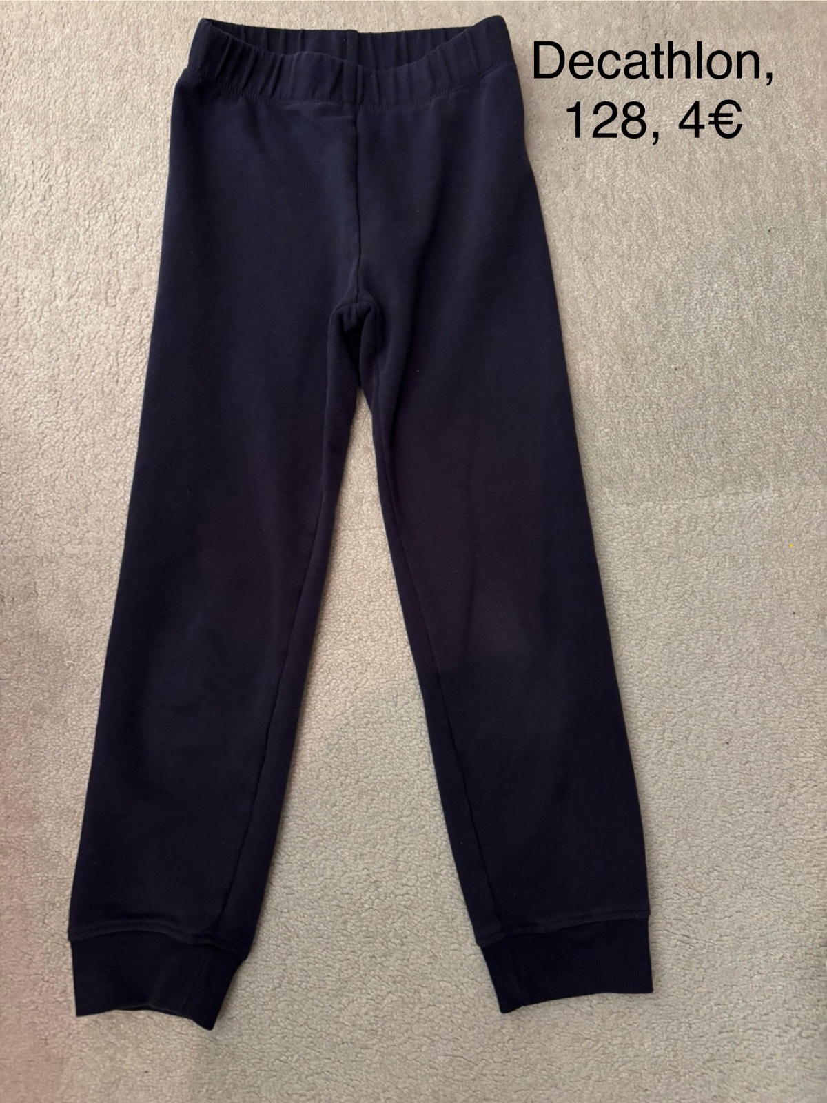 pekne,tensie,par krat oblecene teplaky celk.dlzka 107cm,nakolko boli v skrini nepouzite je uz slabsia guma v pase,ale sikovna mamicka vymenit vhodne aj na cvicenie