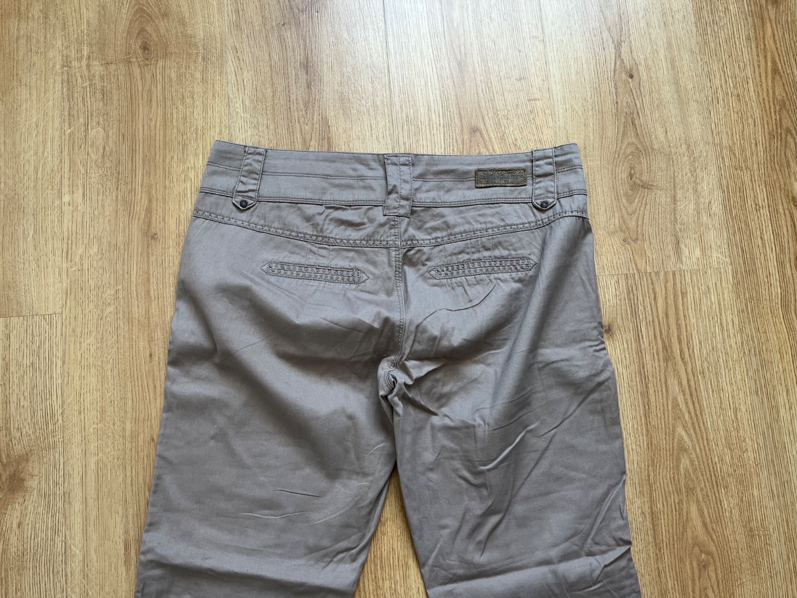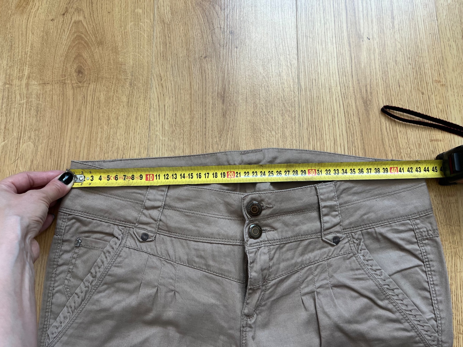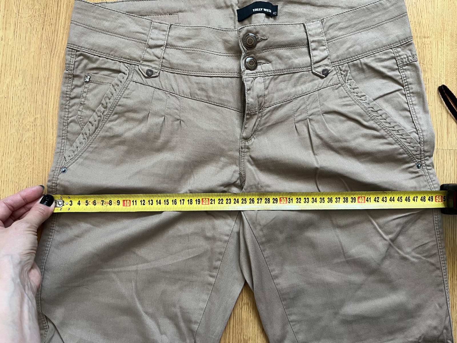 Uzasne damske nohavice vhodne na leto s peknym kontrastnym lemom okolo vreciek a opaskom. Znacka JURGEN MICHAELSEN. NOhavice su nosene len vynimocne a su vo velmi dobrom stave. Fotene neozehlene. N...