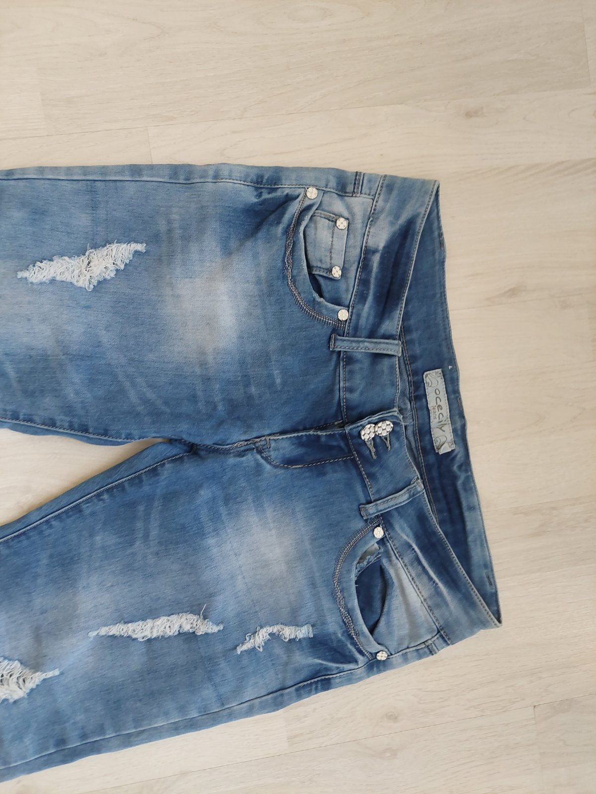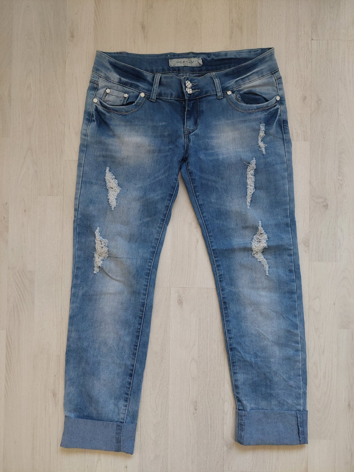 Dámske potrhane rihle s patentom.