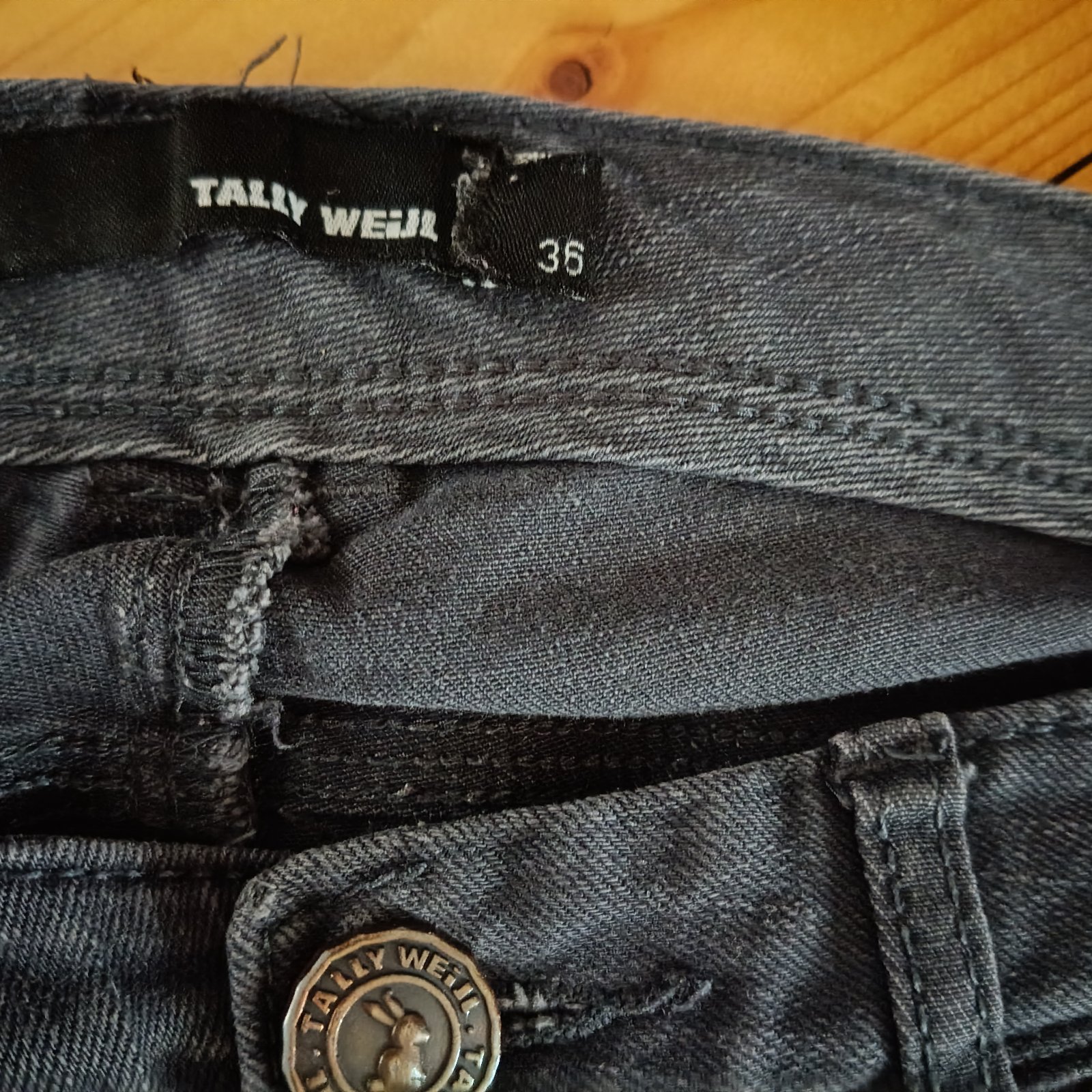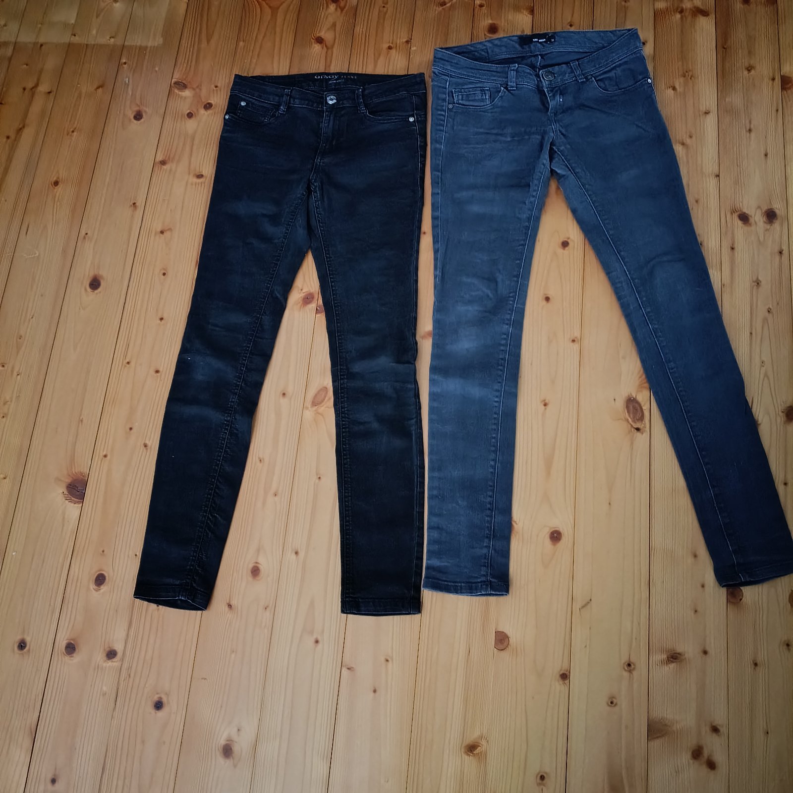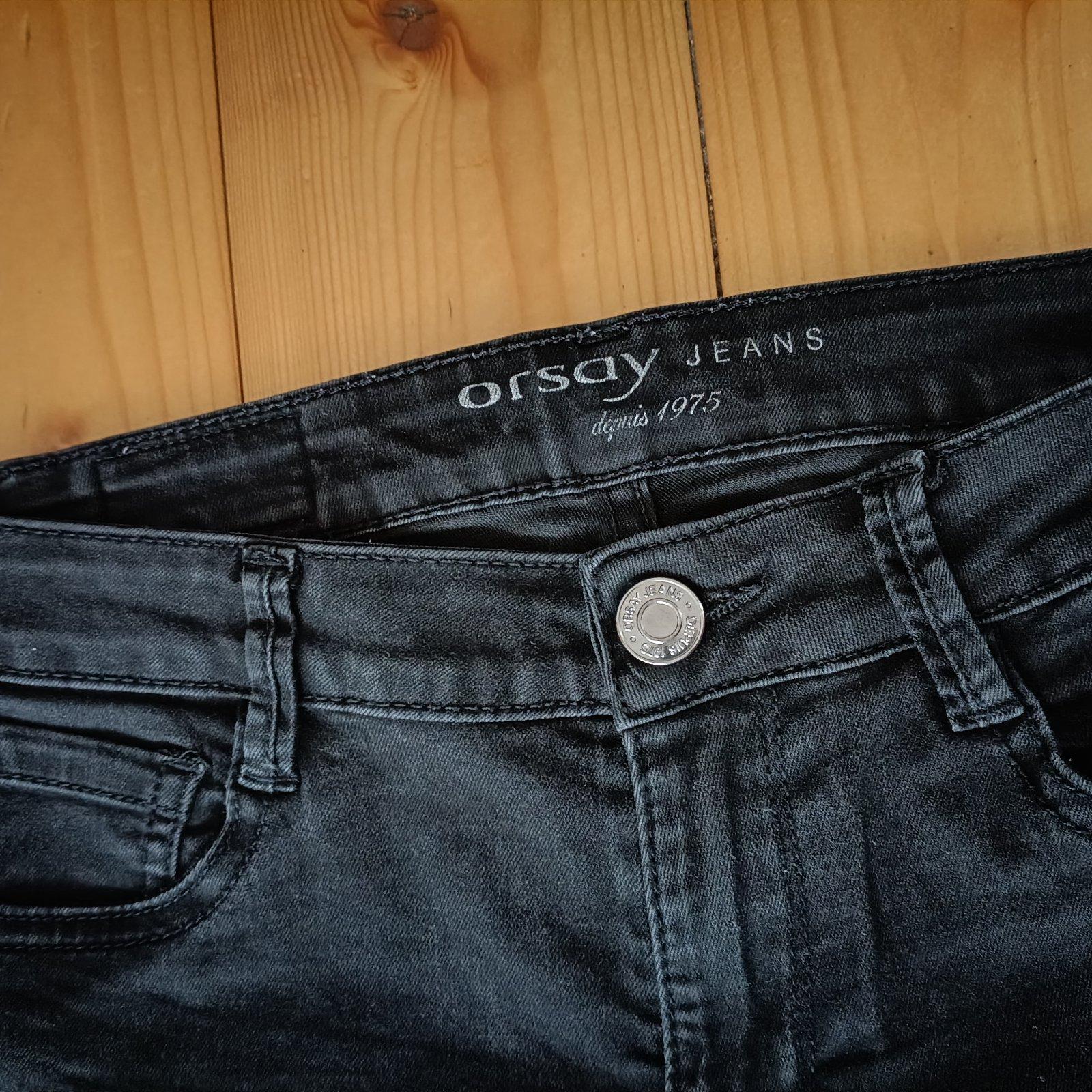Rifle na donosenie. Čierna sú mierne vyblednuté. Značka Orsay, veľkosť 34. Modré značka Tally wejl, veľkosť 36. Cena spolu 1€+poštovné.