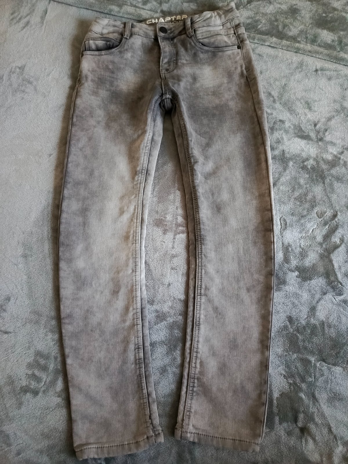 Predám svetlo šedé rifle veľ. 164. Rifle sú nosene ale bez poškodenia. Na jednej nohe malé čiarky ale sú tam od výroby. Cena 8 eur