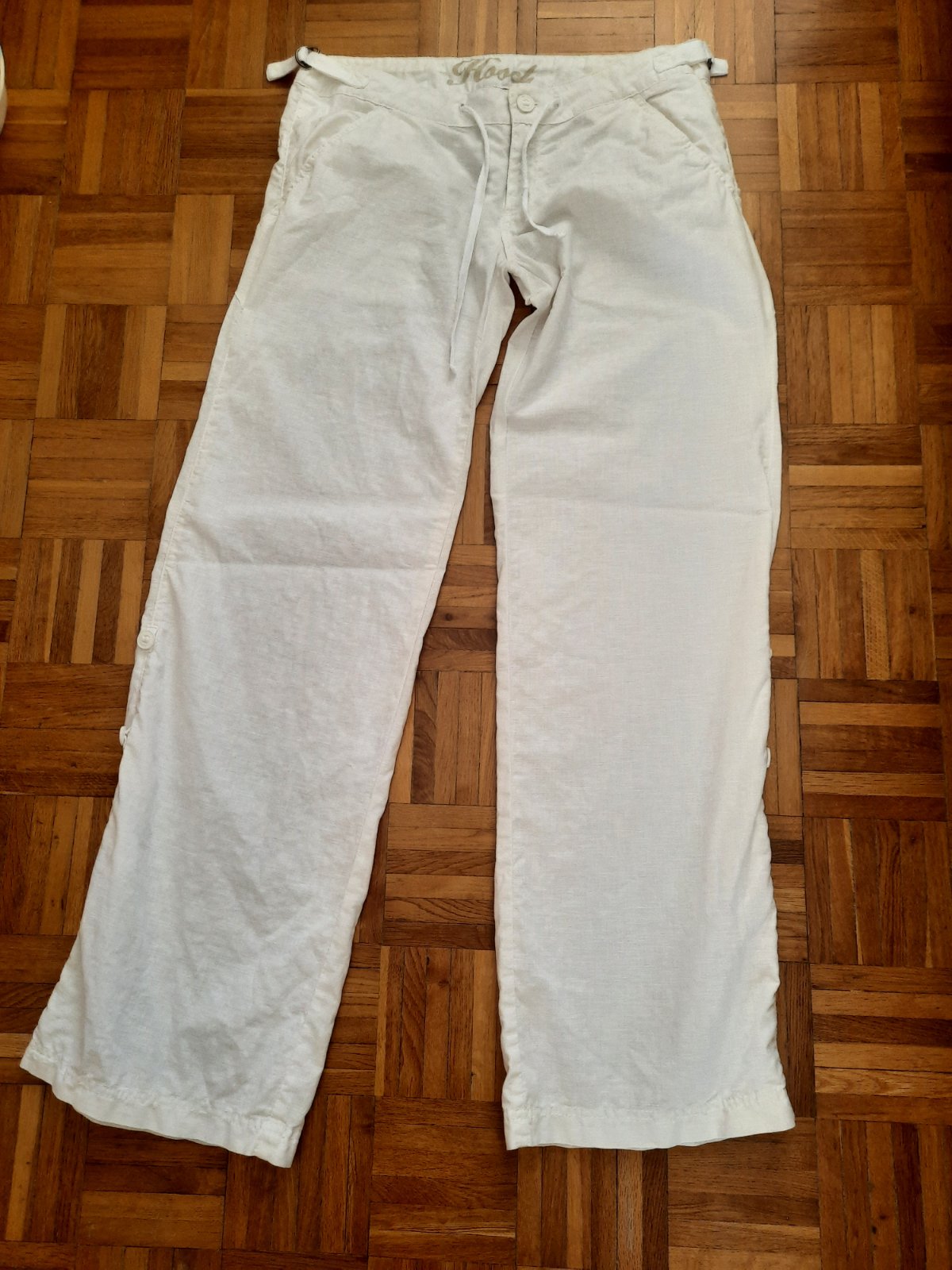 Super vzdušné nohavice. Sára sa dá vypnúť na gombík, potom budú kratšie-3/4 dĺžky. Majú vpredu 2 vačky, vzadu jeden. Sú vo výbornom stave. V páse je aj šnúrka, ktorá sa dá stiahnuť a zúžiť pás podľa potreby.