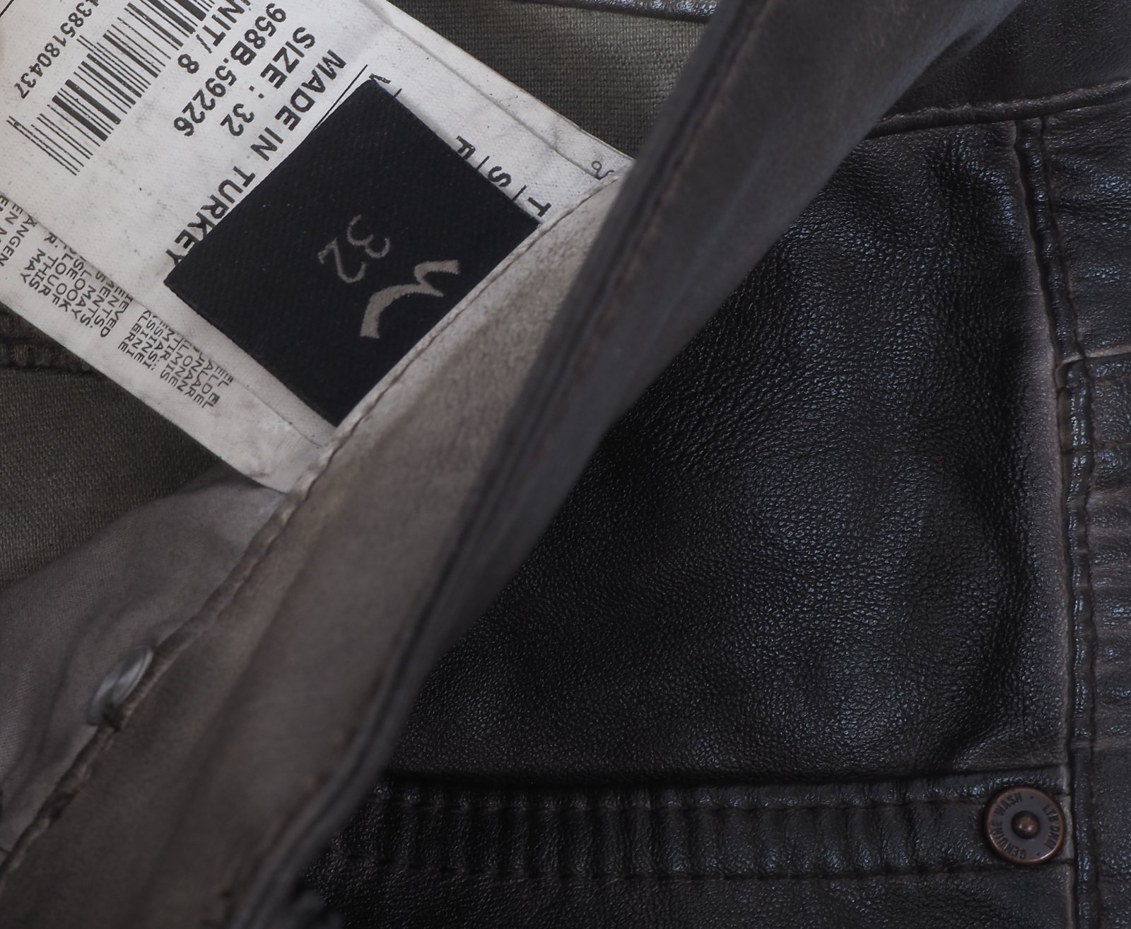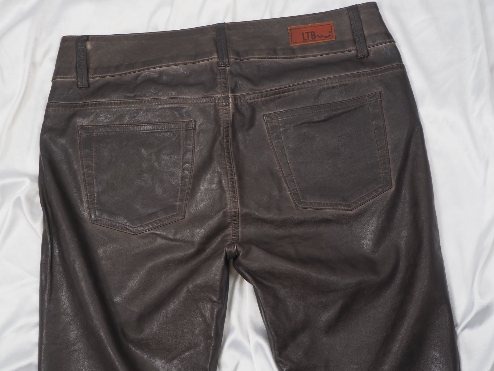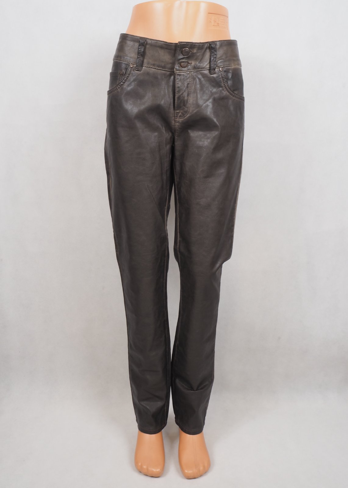 Kvalitné tmavohnedé nohavice, imitácia kože, 54% polyuretán, 46% viskóza, super stav.