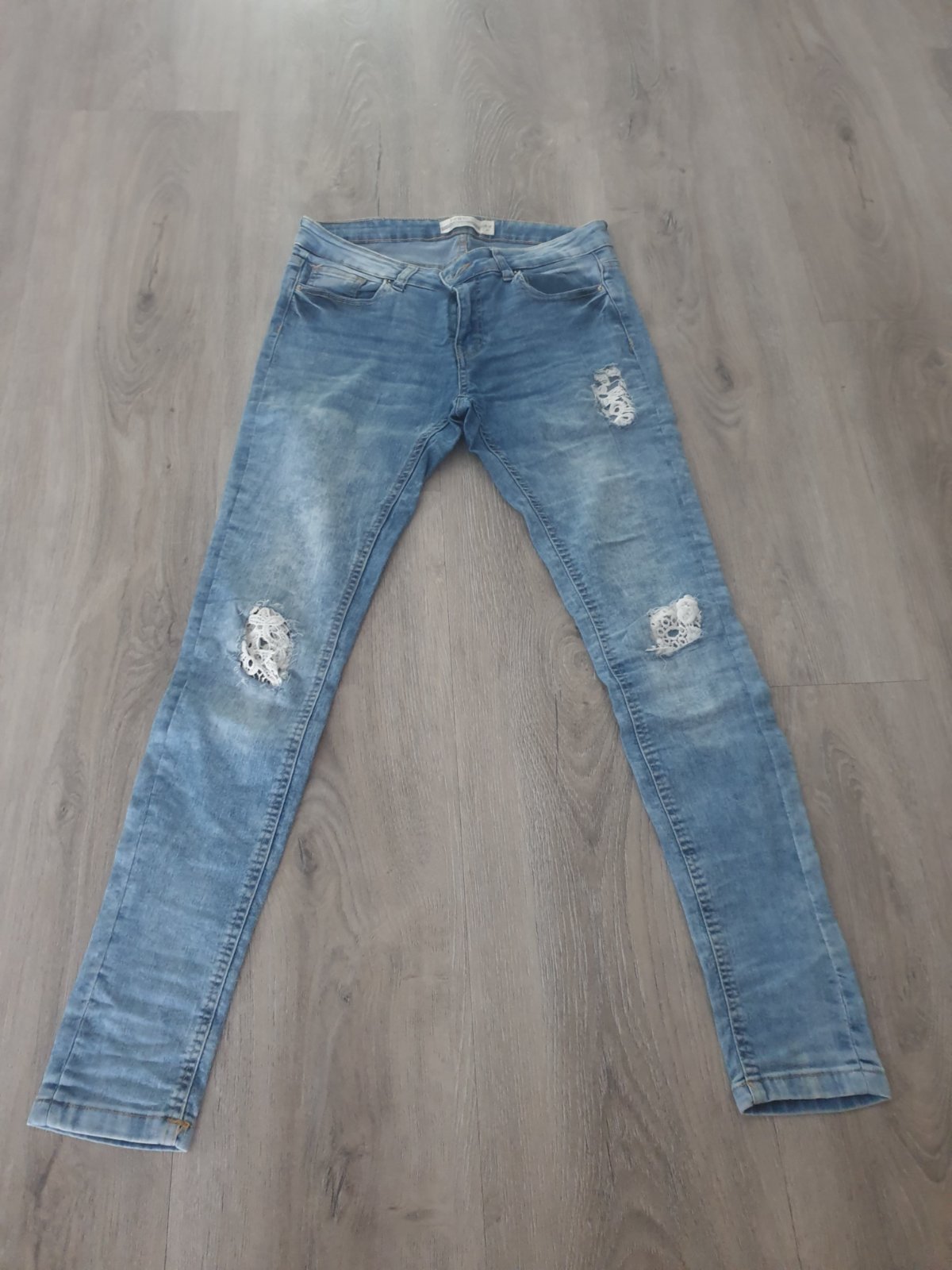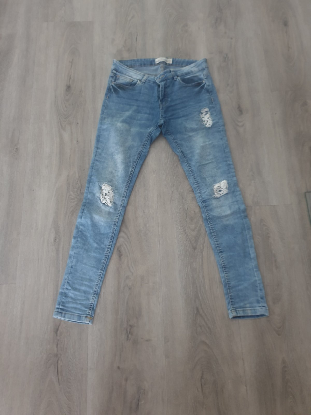 Pár krát nosené, žiaľ sú mi veľké. Vysoký pás.Sú strečové. dĺžka 95cm,od rozkroku 72cm,pás 35cm,predný sed 27cm,zadný 32cm