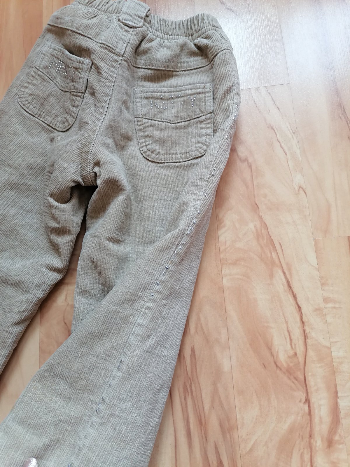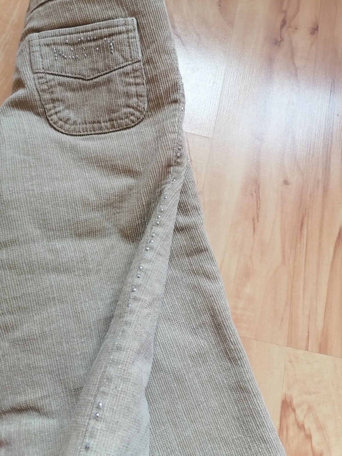 Pekný zachovalý stav, zo zadu drobný fliačik, určite ešte využiteľné. Super teplé, podšite fleesom. Po bokoch kamienky.