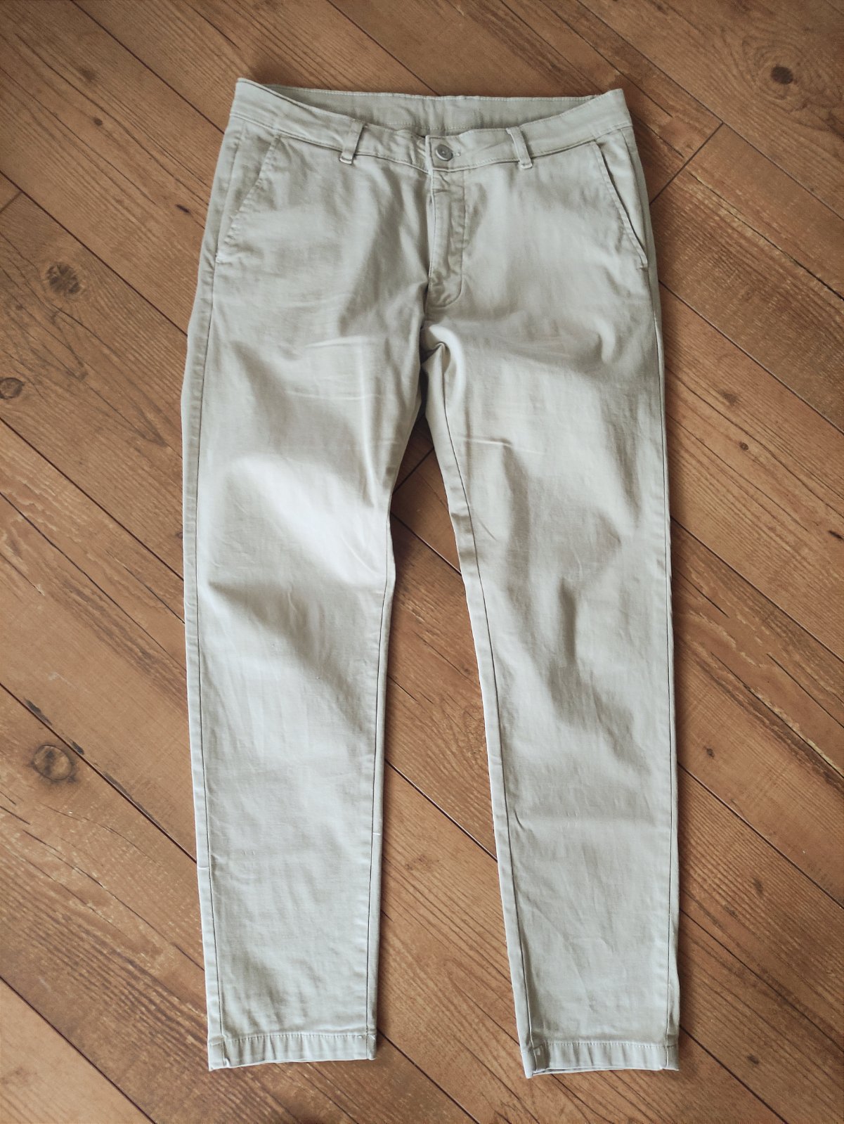 Predám pánske 7/8 chino nohavice Zara vel. M, pás 44 cm, predný sed 24 cm, zadný 38 cm, stehno 27 cm, celková dĺžka 90 cm, spodok 14 cm, 5 vreciek, príjemná tenká s elastanom látka, super strih, bl...