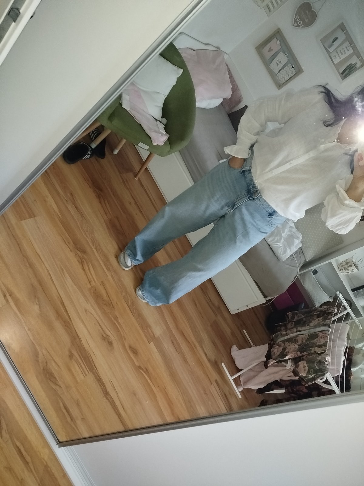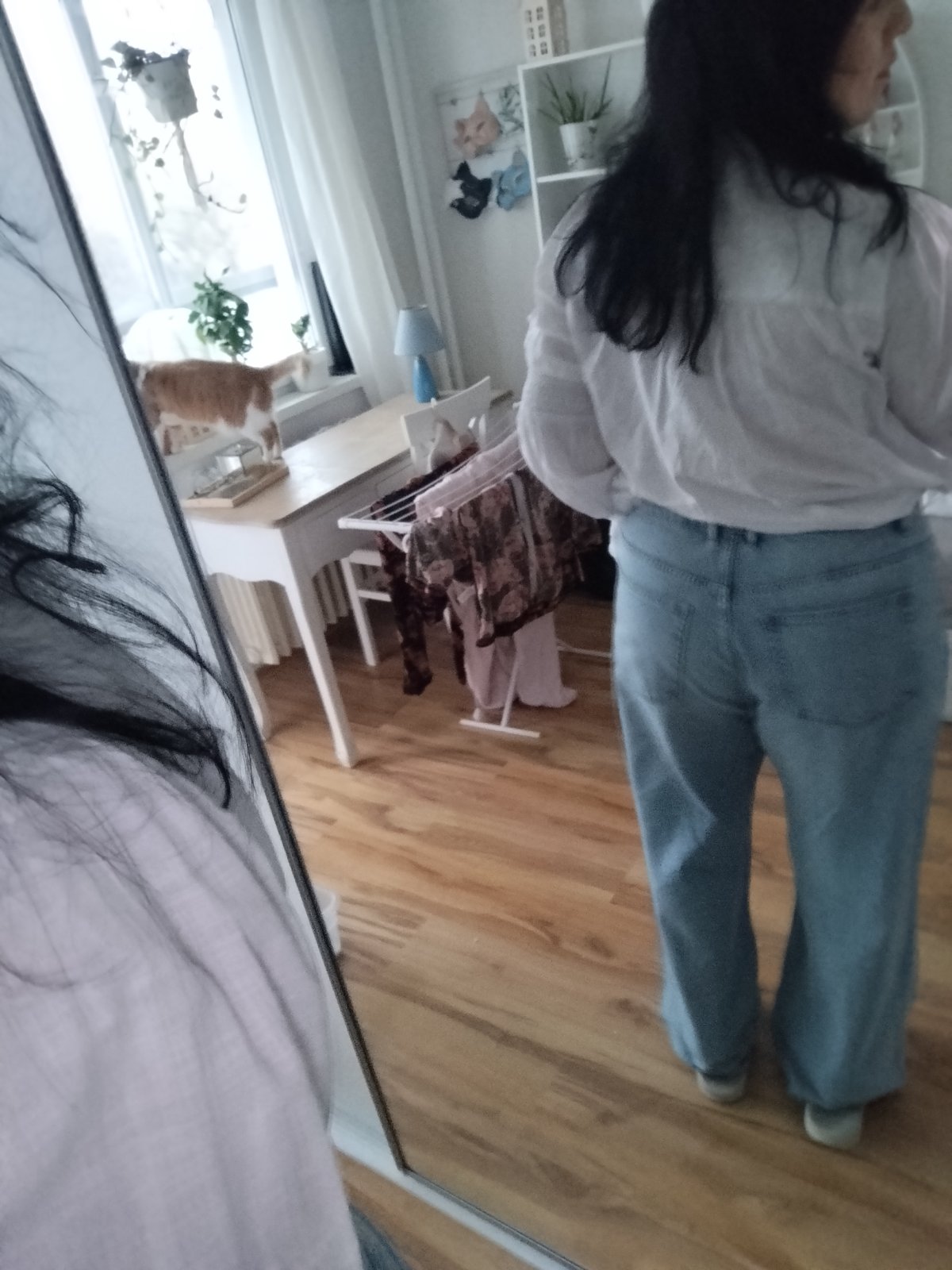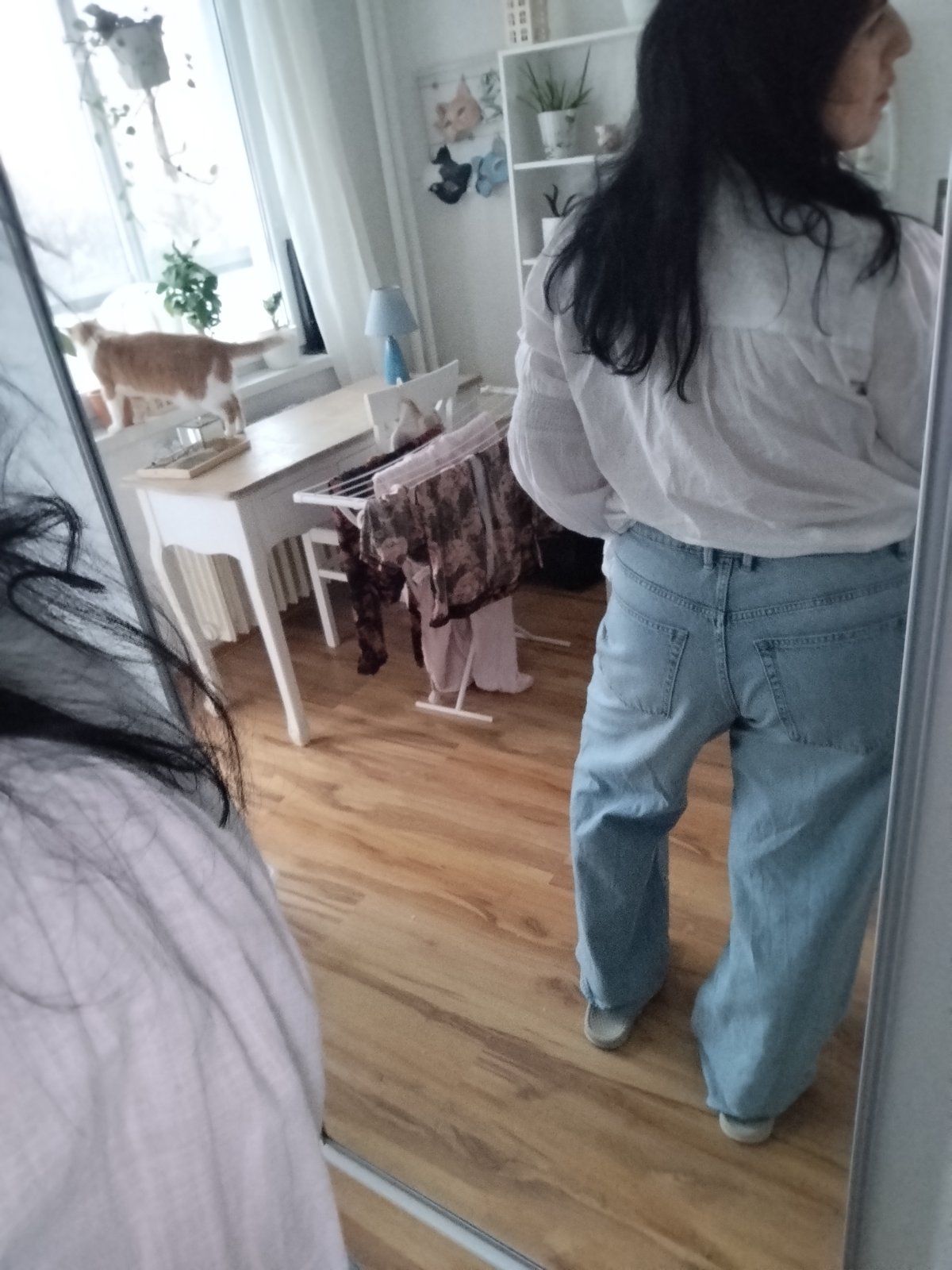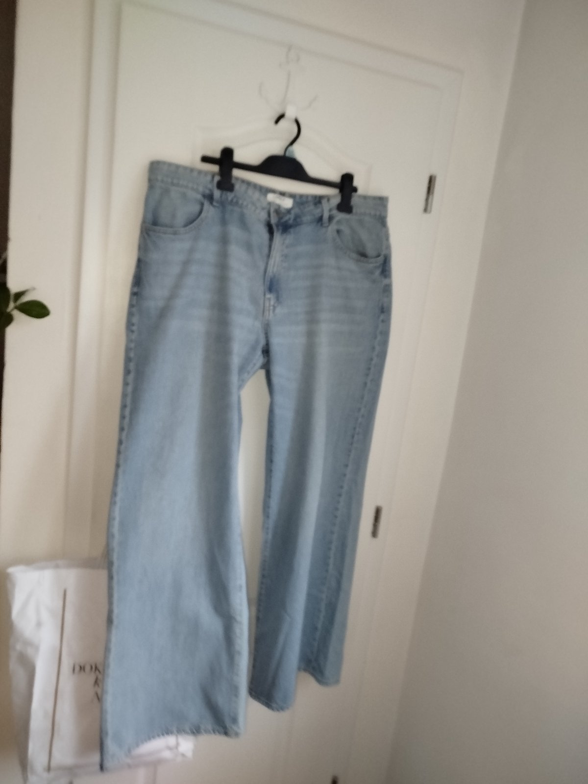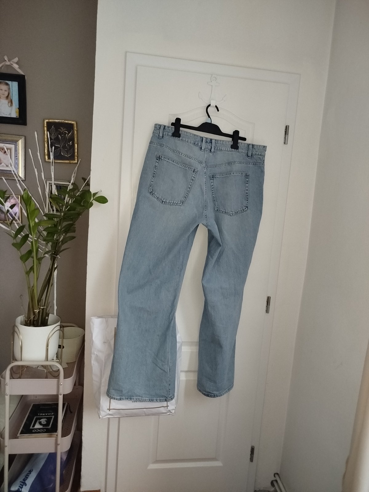 Moderné aktuálne široké rifle Lindex wide bez elastanu dĺžka 112cm,pás 52x2cm, boky 63x2cm,spodok 33x2cm. Sú perfektné dobre robia postavu zakryjú nedostatky,mne sú už veľké .nevyzerajú dobre na mne.Pc 59.99eur