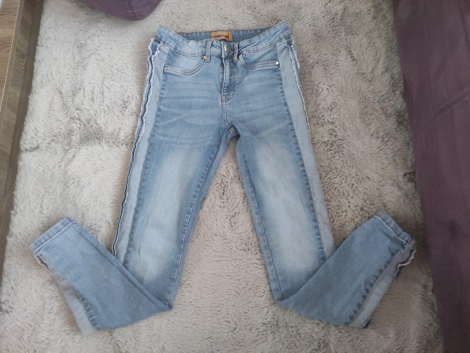 Suprové rifle so zníženým sedom zn. 525 - veľkosť síce písaná XS, ale sú omnoho väčšie, sedia tak na plné M, možno skôr až na L, ja mám 60kg a sú mi veľké... Elastická mäkká riflovina, členková dĺž...
