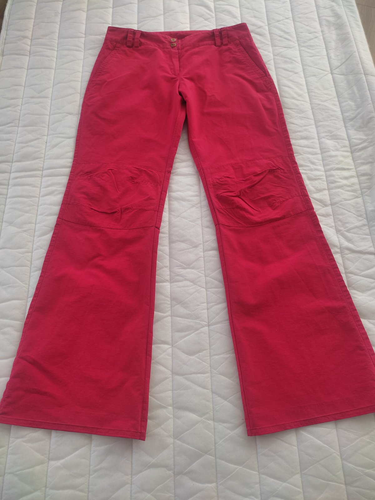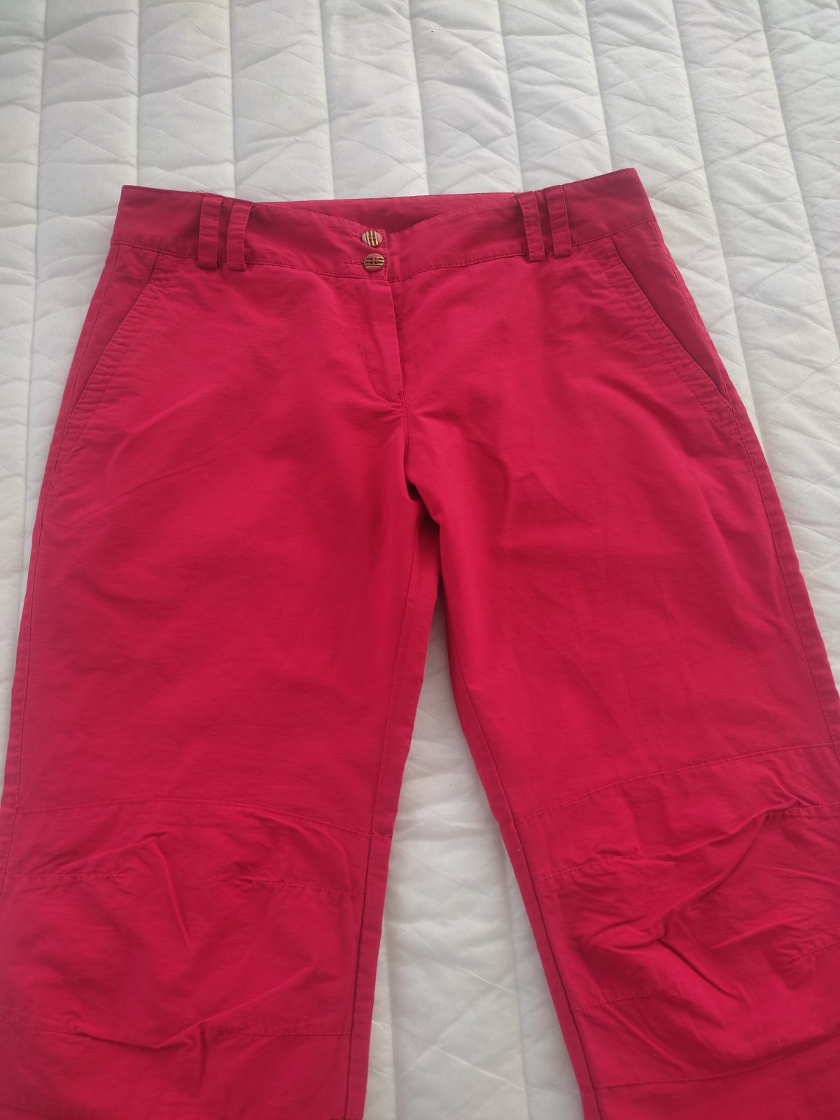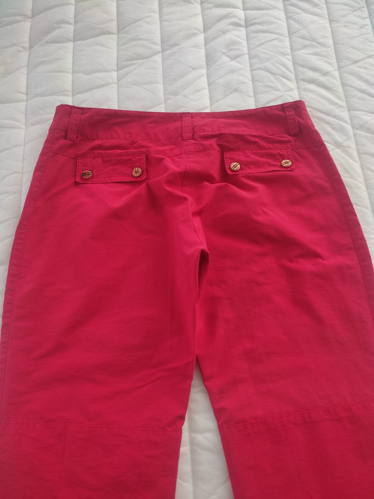 Predám športové nohavice šité na mieru v krajcirstve.Su v super stave bez poškodenia,len na spodu vidieť pásik kde sa nohavice predlžovali.Celkova dĺžka 102 CM,pás 40x2 cm,sed 32 CM,dĺžka od rozkroku 81cm.