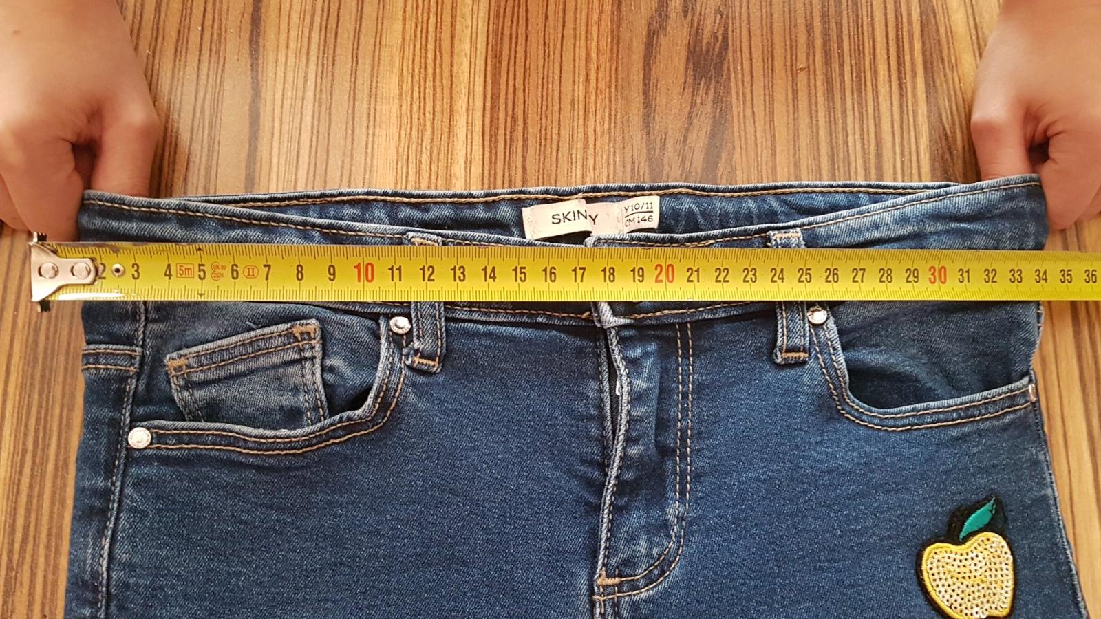 Predam dievcenske rifle zn.Skiny, vel.146, rozmery vo fotkach, cena 8 eur