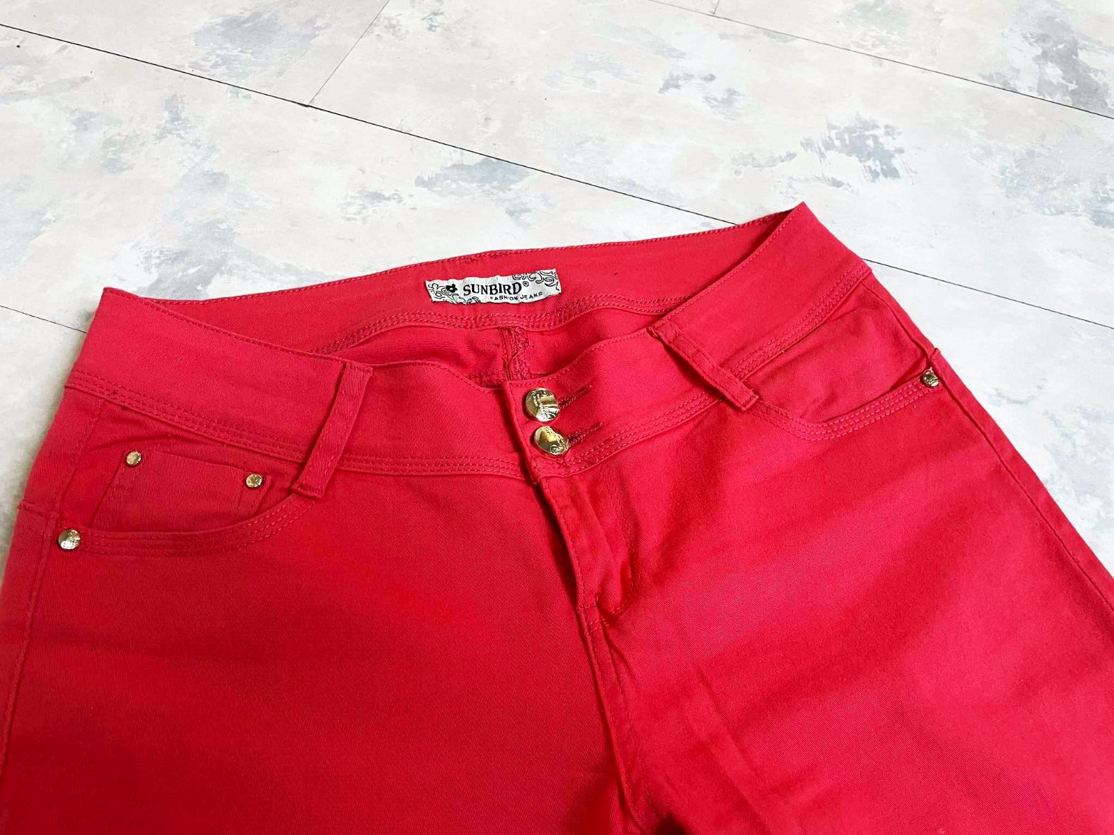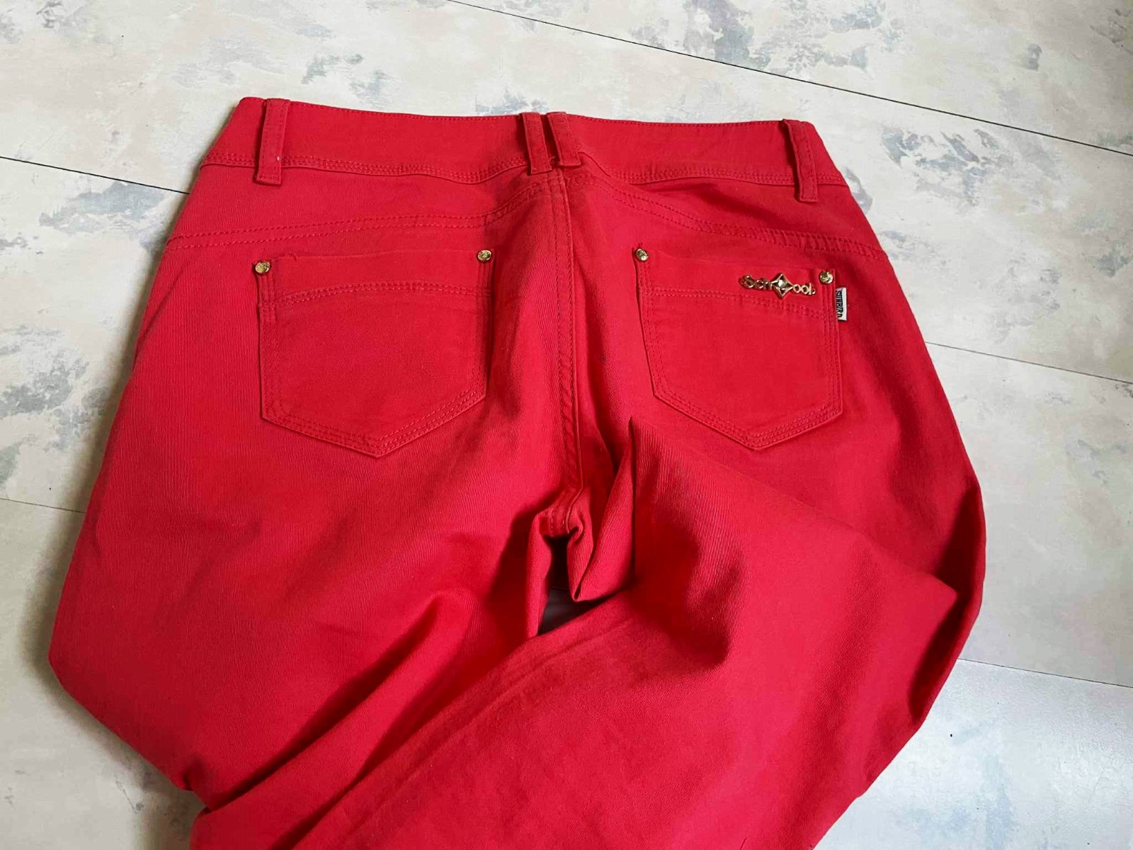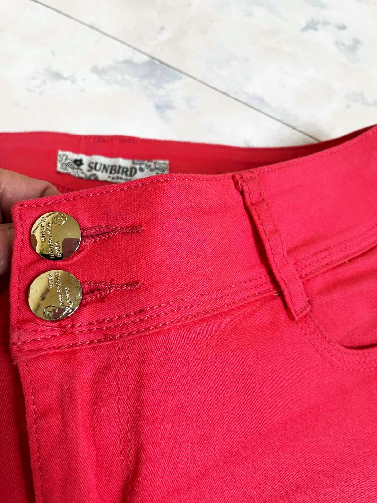 kvalitné neznosené červeno-ružové slimky,perfektne sedia na postave, sú v top stave - raz oprané,dajú sa nosiť i vyhrnuté,krásne na leto,zaujímavá pestrá farba,pás v klude 40 x 2 - poddá sa max. so 43 x 2 cm,boky52/53 x 2 cm,predný sed 21 cm,zadny 34 cm,stehno obvod 28 x2 cm,vonk.dlžka 103 cm,vnut. 81 cm,noha dolu 15 cm - sú pružné - poddajú sa pekne