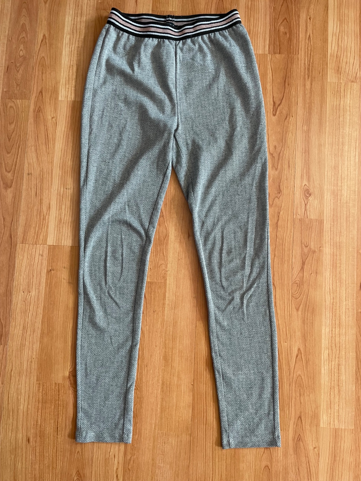 V dobrom stave, bez poskodenia a flakov.Dlžka je 91 cm, od rozkroku- 66 cm.V pase guma, širka v pase - 30-34 cm.Postovne podla tarify SP