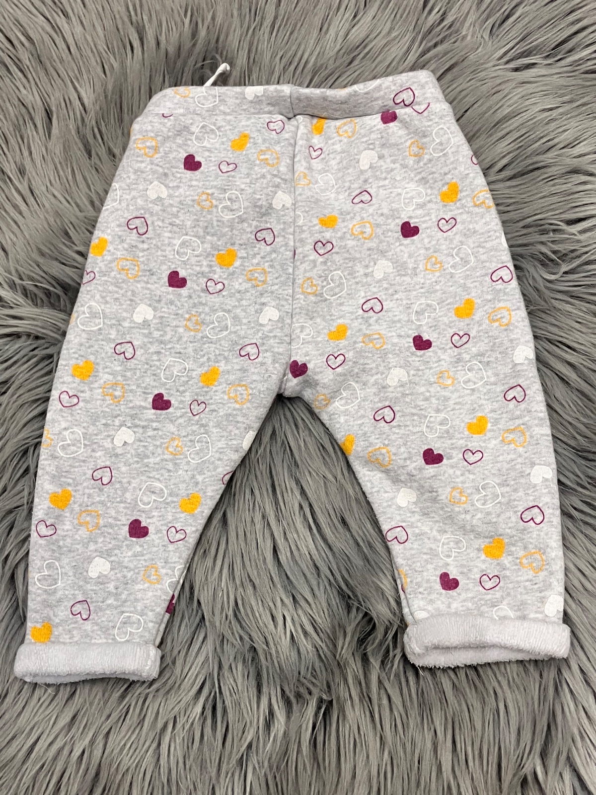 Dievčenské hrubé tepláky so srdiečkami, pás na gumu, dve bočné vrecká, elastické.