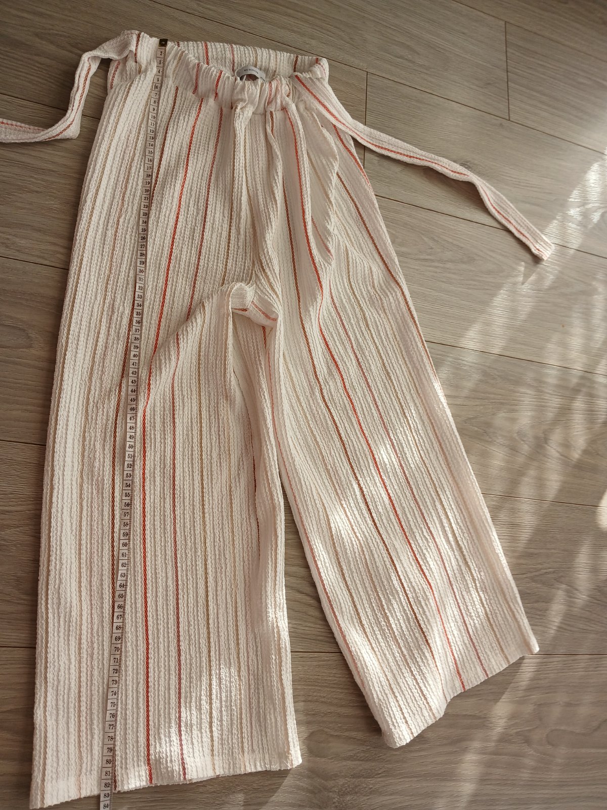 oblecene parkrat,v super stave,su mierne elasticke,krasna bezova farba,miery:bocna dlzka 90cm,od rozkroku 67cm,pas v klude 32x2cm ale natiahne sa je tam guma