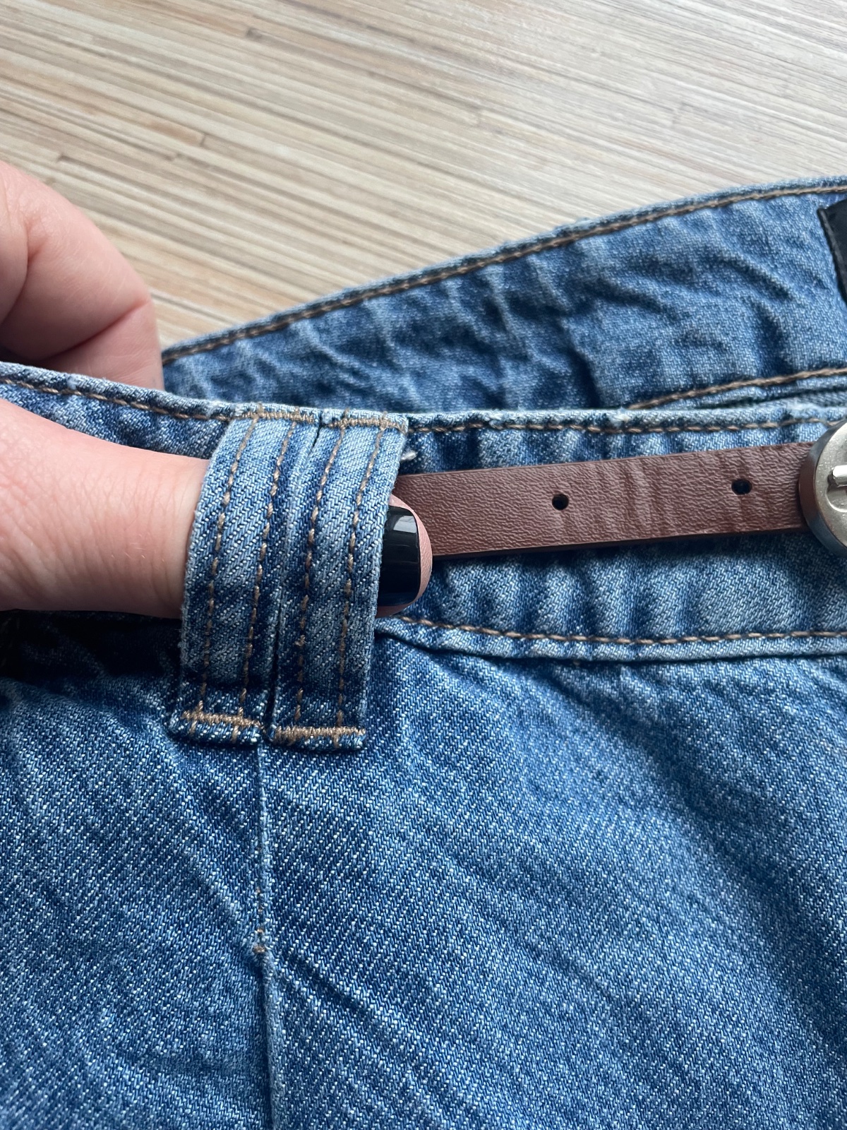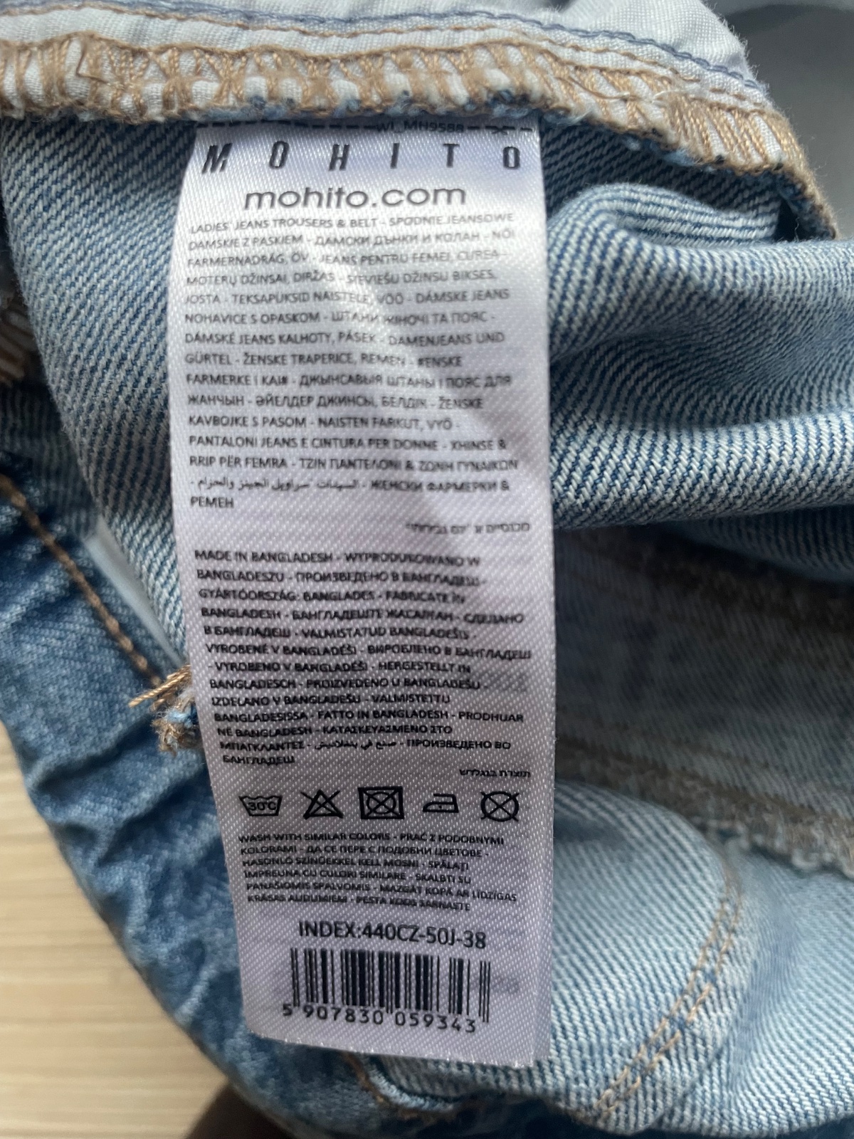 Rifle makkuckej rifloviny s opaskom s bocnymi vreckami, zadne su falosne, oblecene raz, velkost 38