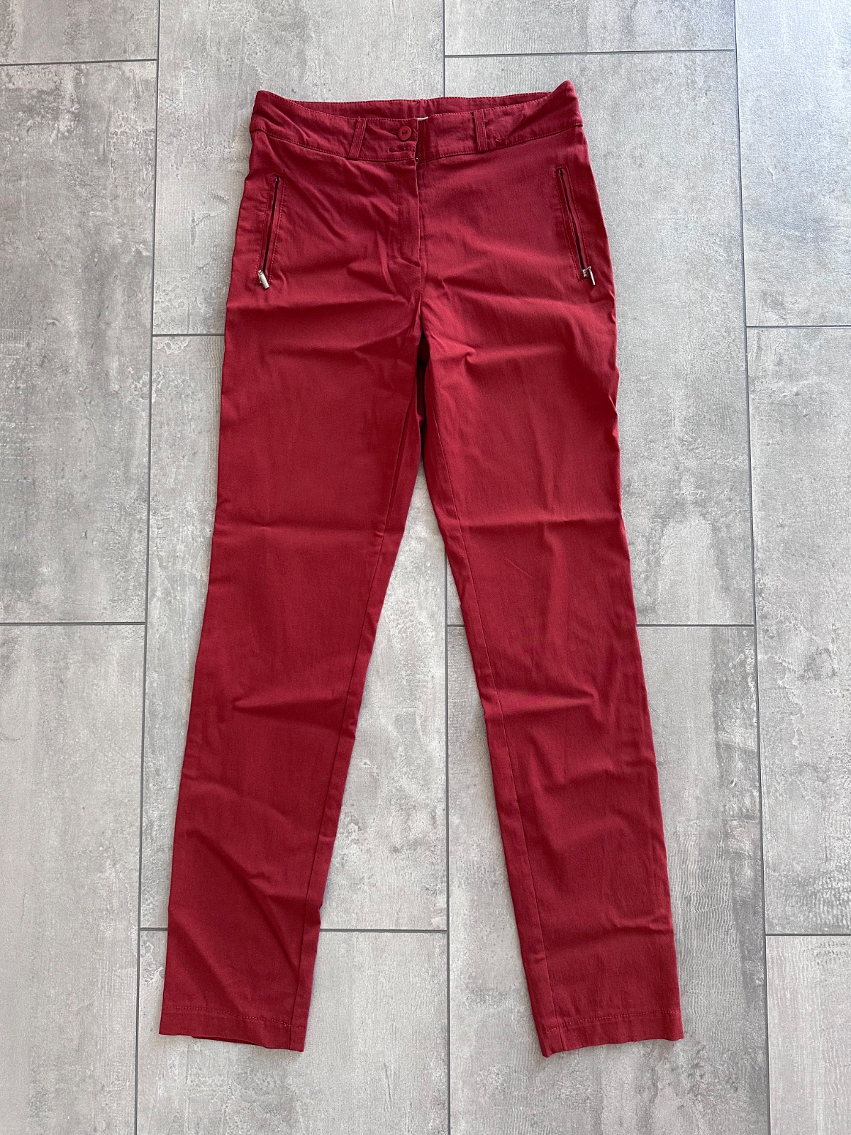 Elastické nohavice, príjemný materiál. Veľkosť 40, aj tak sedia alebo na 38/40. Ako nové. Farba je tehlová.