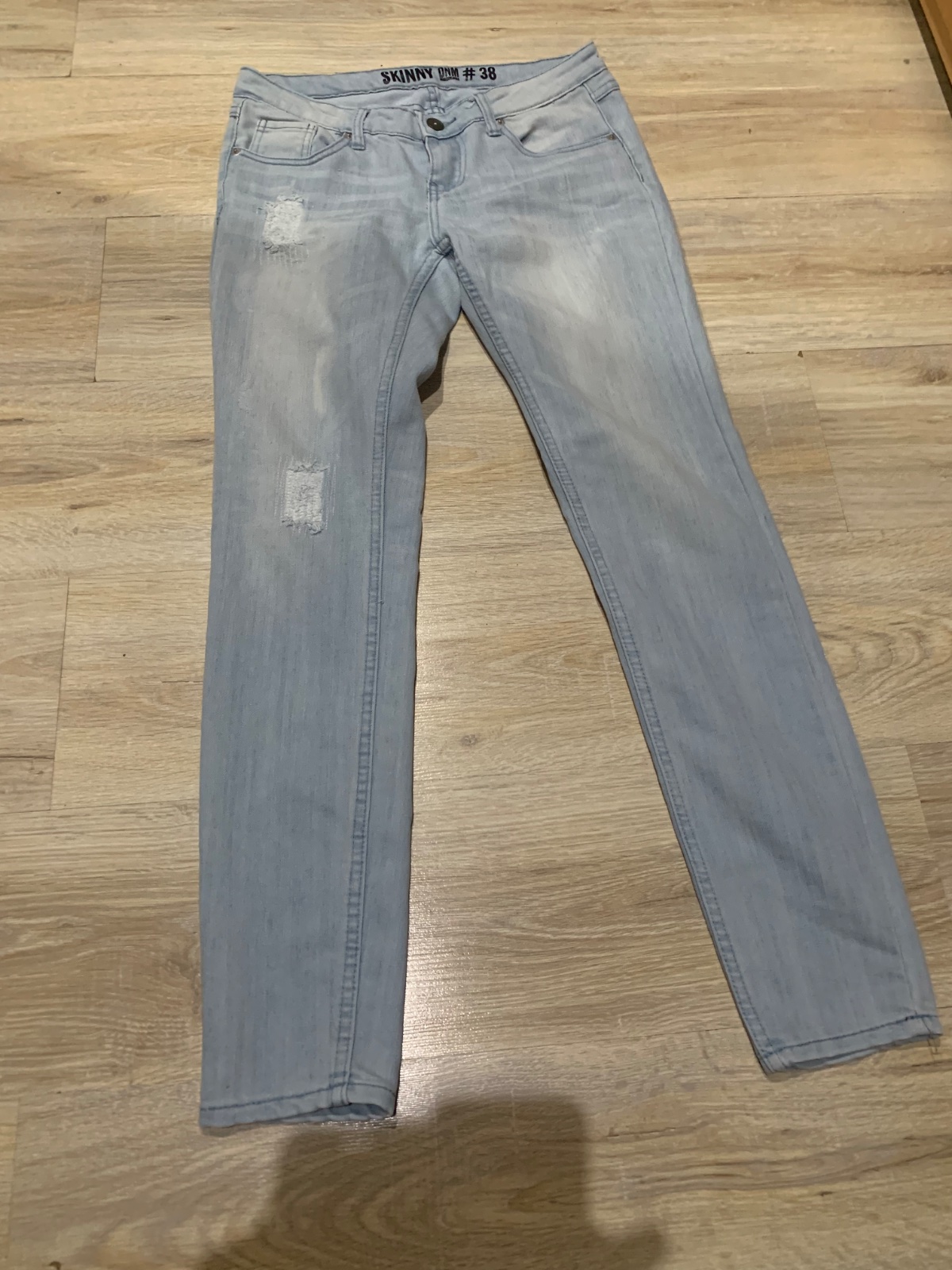 Predám rifle Ok nosený stav velkost38 dlzka106cm od rozkroku dolu81cm pas40cm prijemna riflovina nie tvrda Posta podľa tarify luk pos