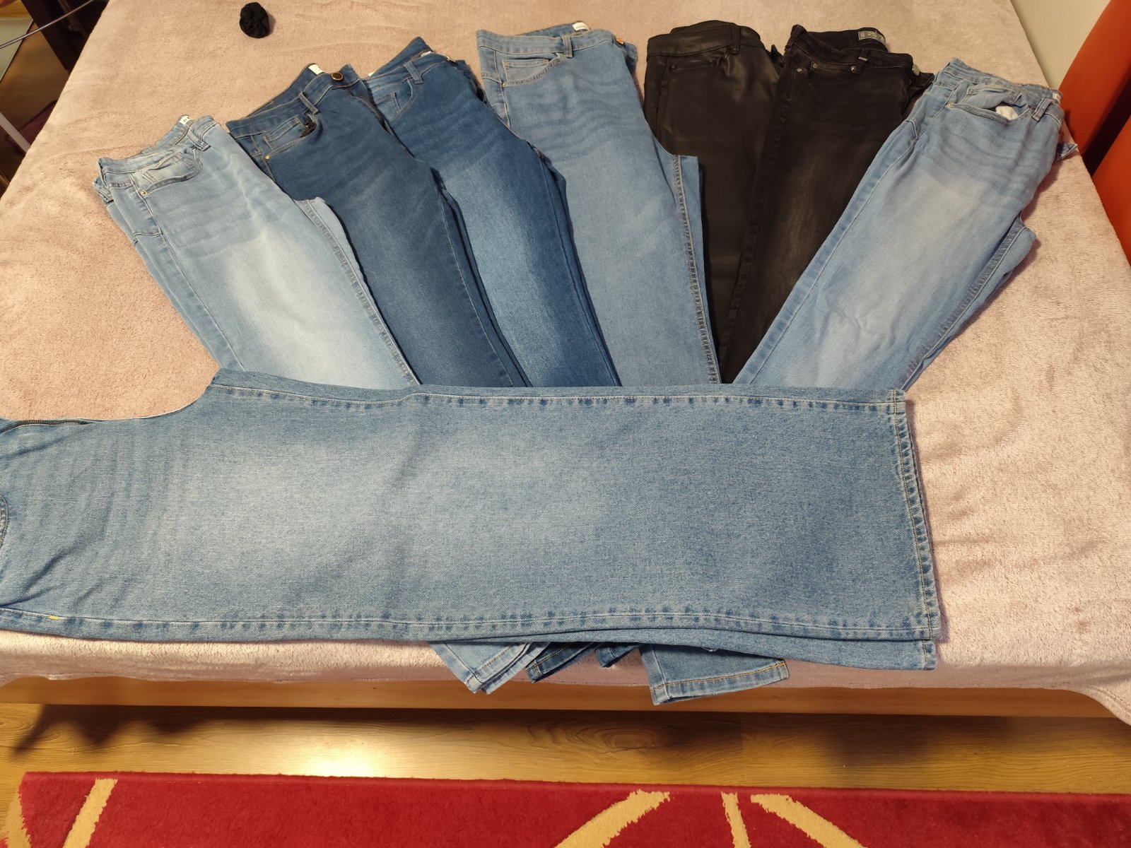 Mala som ich len párkrát na sebe,no boli mi dlhé,takže na jednej nohavici na spodku som ich trošku ošúchala a nemájú originál gombík,radšej upozorňujem,ináč sú suprové. dížka 101 cm pas 2x 34 cm bo...